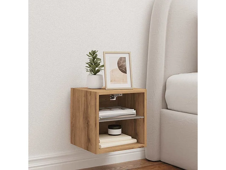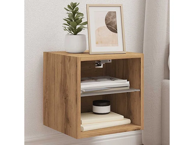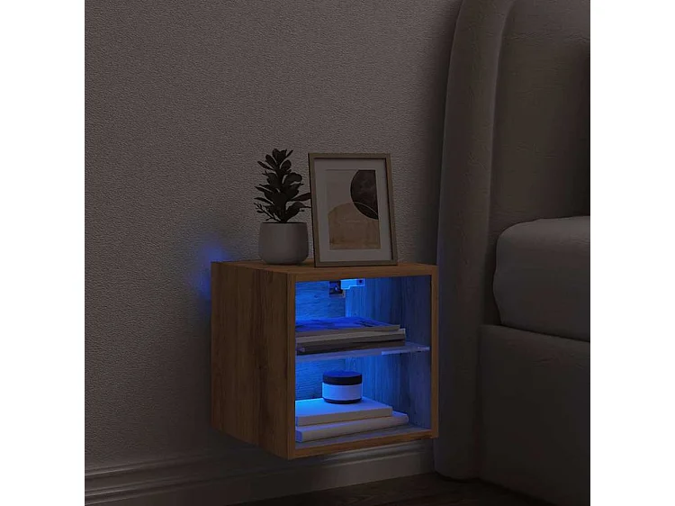 Meuble TV mural avec lumière LED chêne artisanal 30x28,5x30