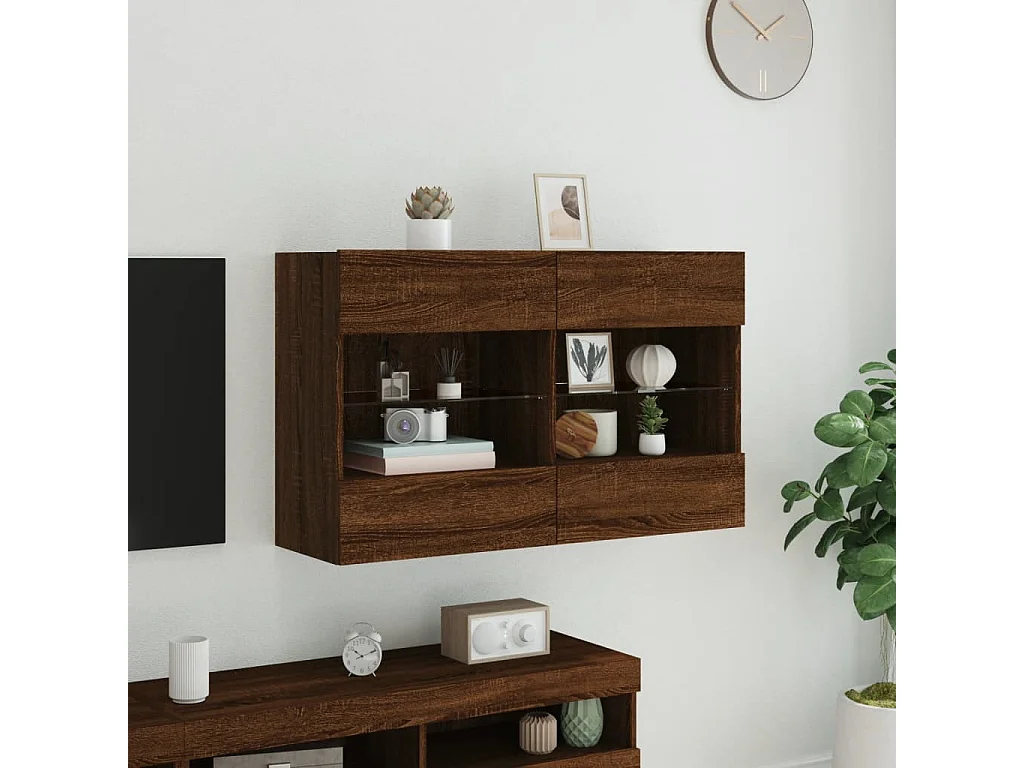 Meuble TV mural avec lumières LED chêne marron 98,5x30x60,5 cm