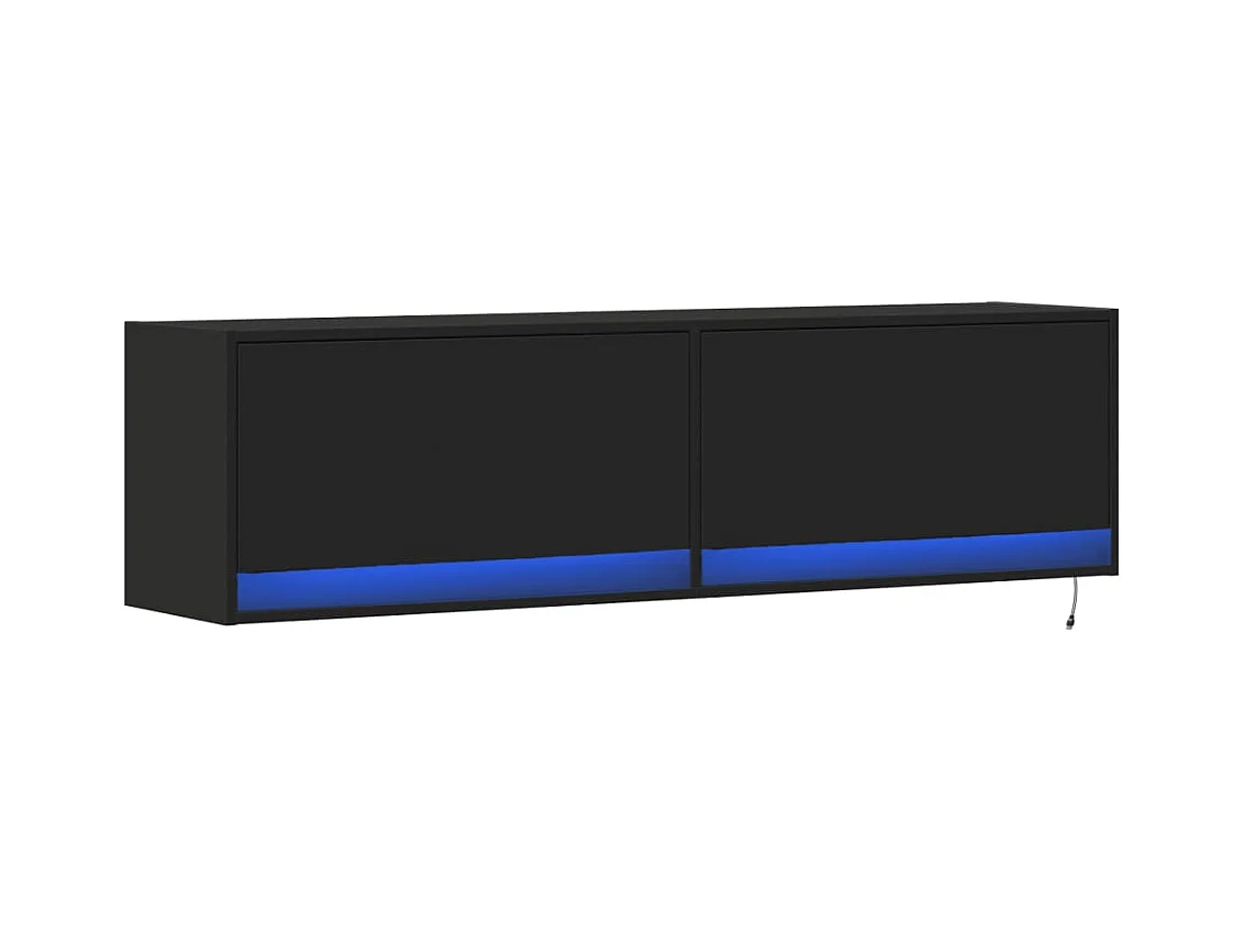 Meuble TV mural avec lumières LED noir 140x31x38 cm