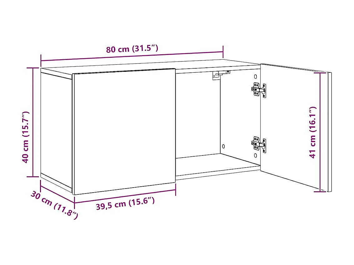 Meuble TV mural chêne artisanal 80x30x41 cm