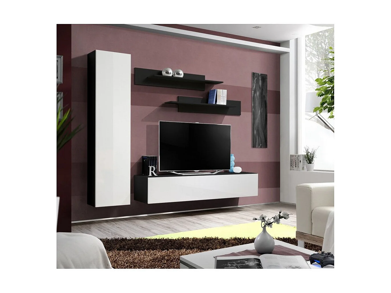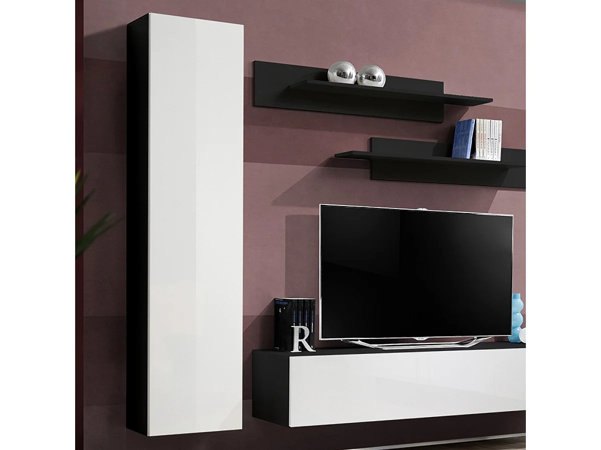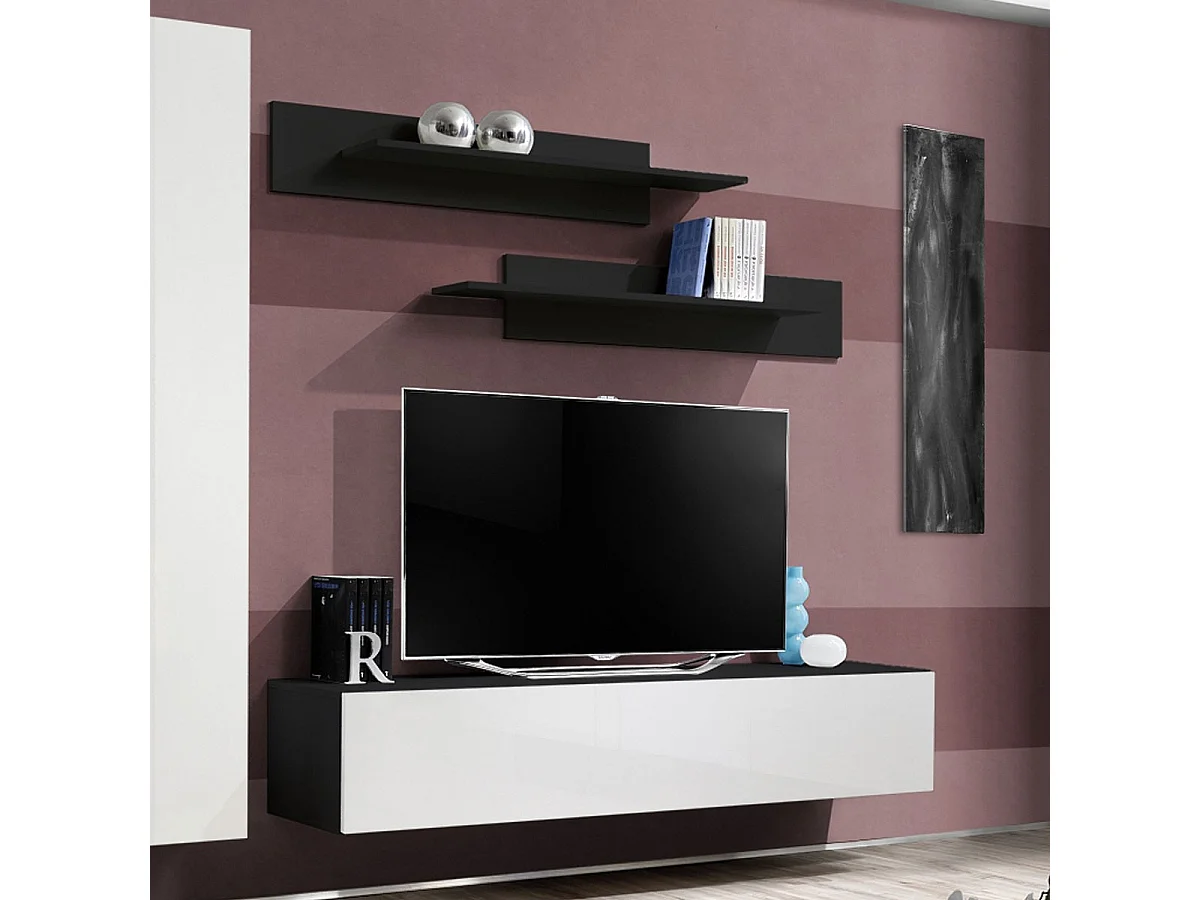 Meuble TV Mural Design "Fly I" 210cm Blanc & Noir