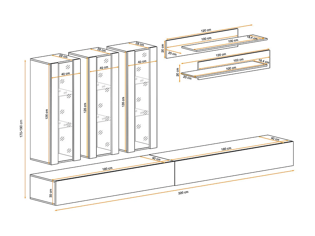 Meuble TV Mural Design "Fly II" 320cm Noir & Blanc