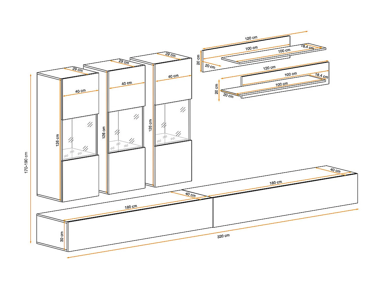 Meuble TV Mural Design "Fly III" 320cm Noir & Blanc