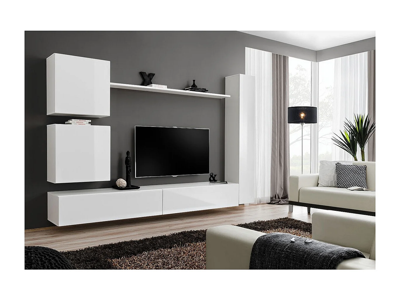 Meuble TV Mural Design "Switch VIII" 280cm Blanc