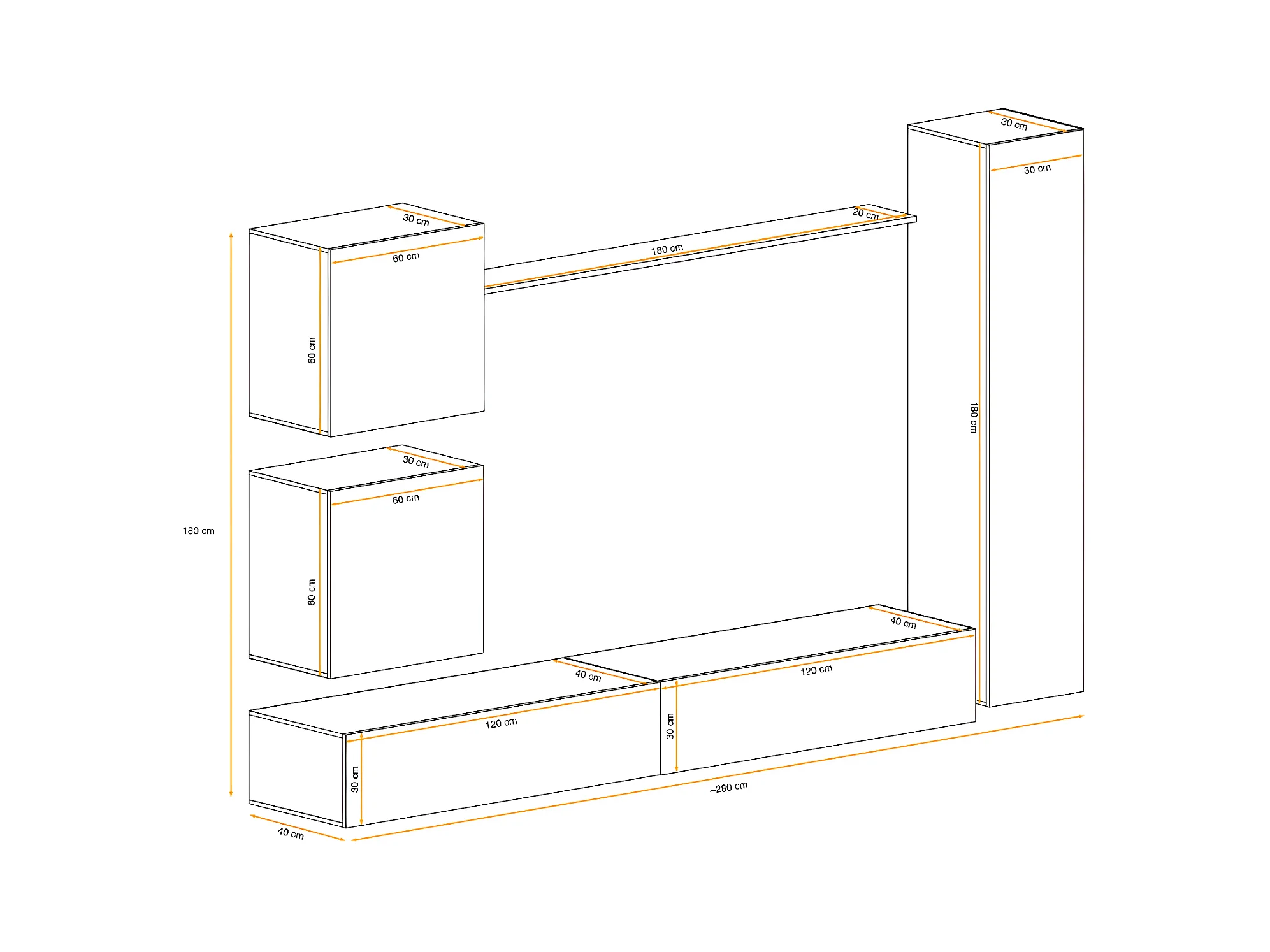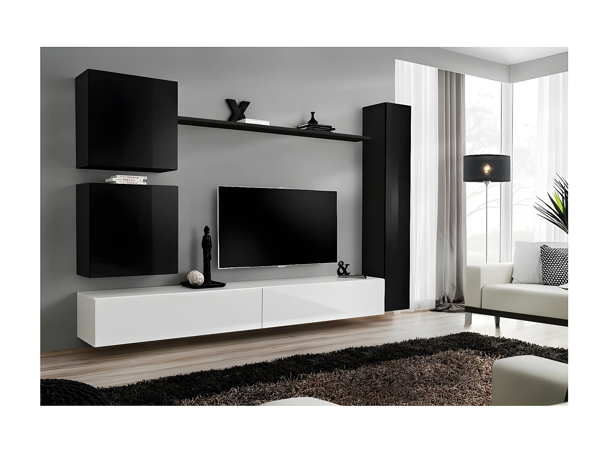 Meuble TV Mural Design "Switch VIII" 280cm Noir & Blanc