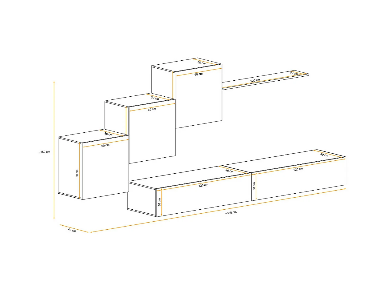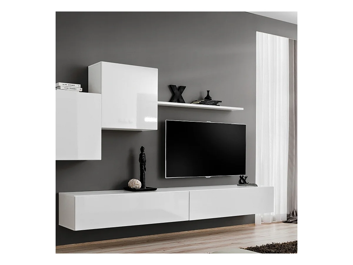 Meuble TV Mural Design "Switch X" 330cm Blanc