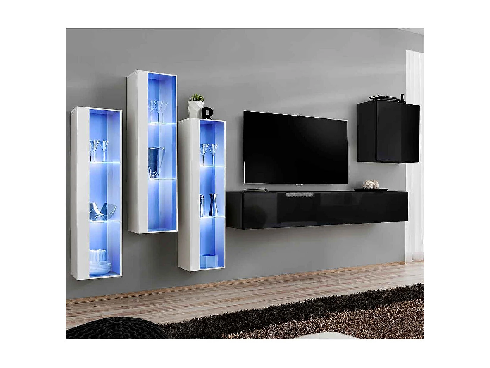 Meuble TV Mural Design "Switch XIII" 330cm Noir & Blanc