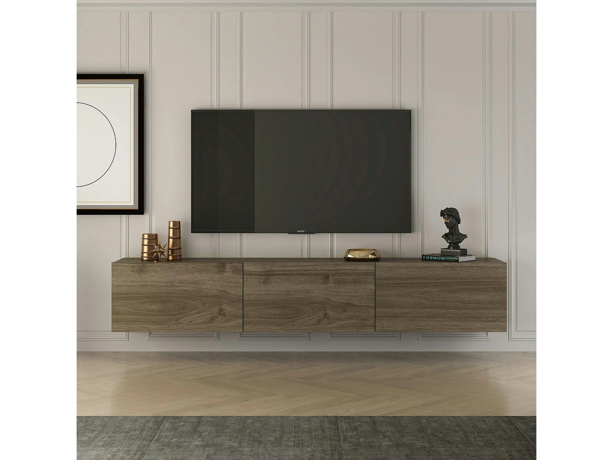 Meuble TV mural effet noyer - 3 niches MARFA