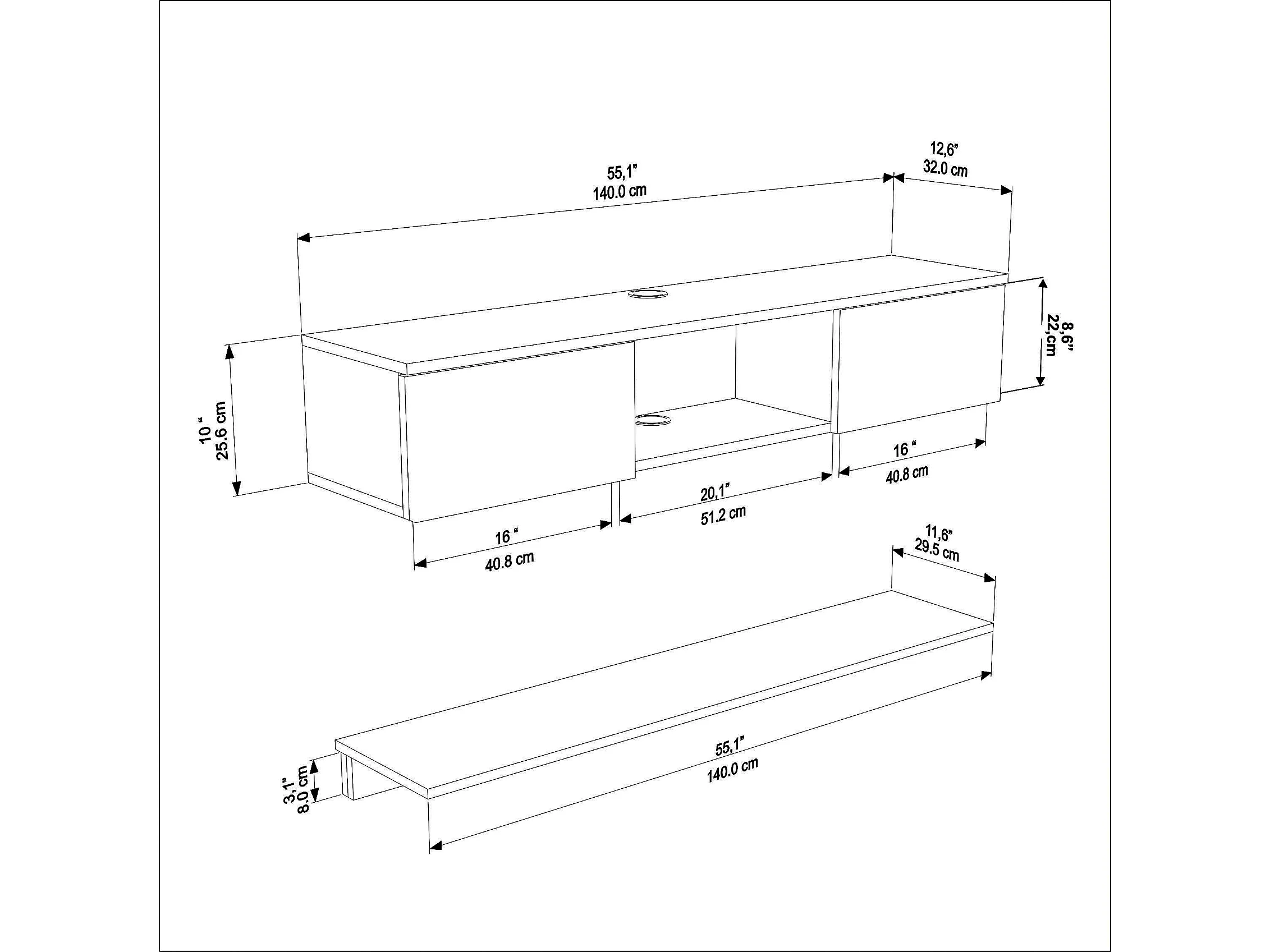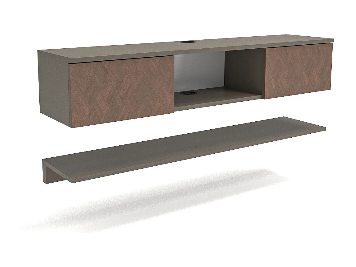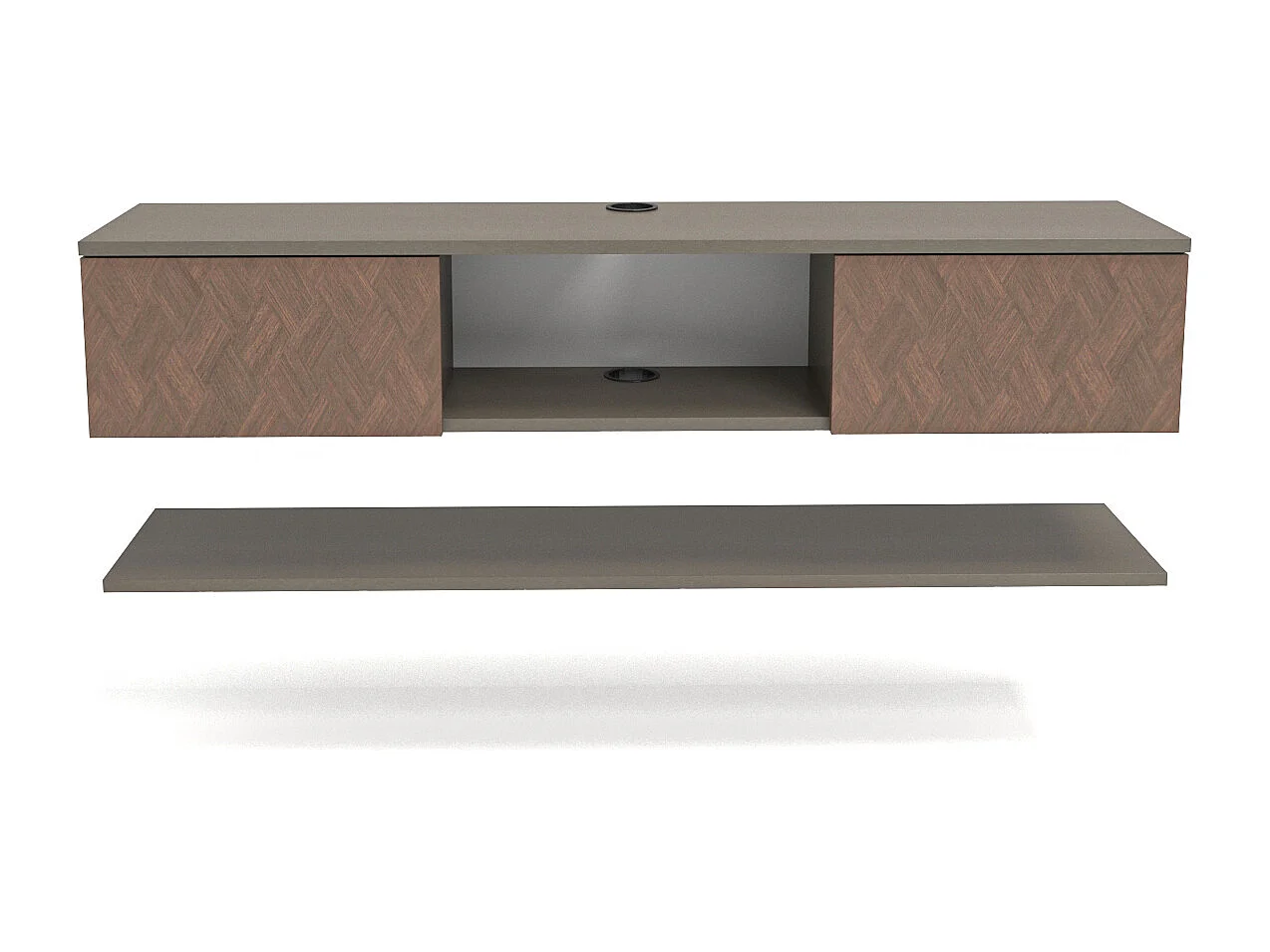 Meuble tv mural Elia flottant 140 cm - armoires - passe-cable - étagère murale incluse (Effet Galaxy et Vintage)