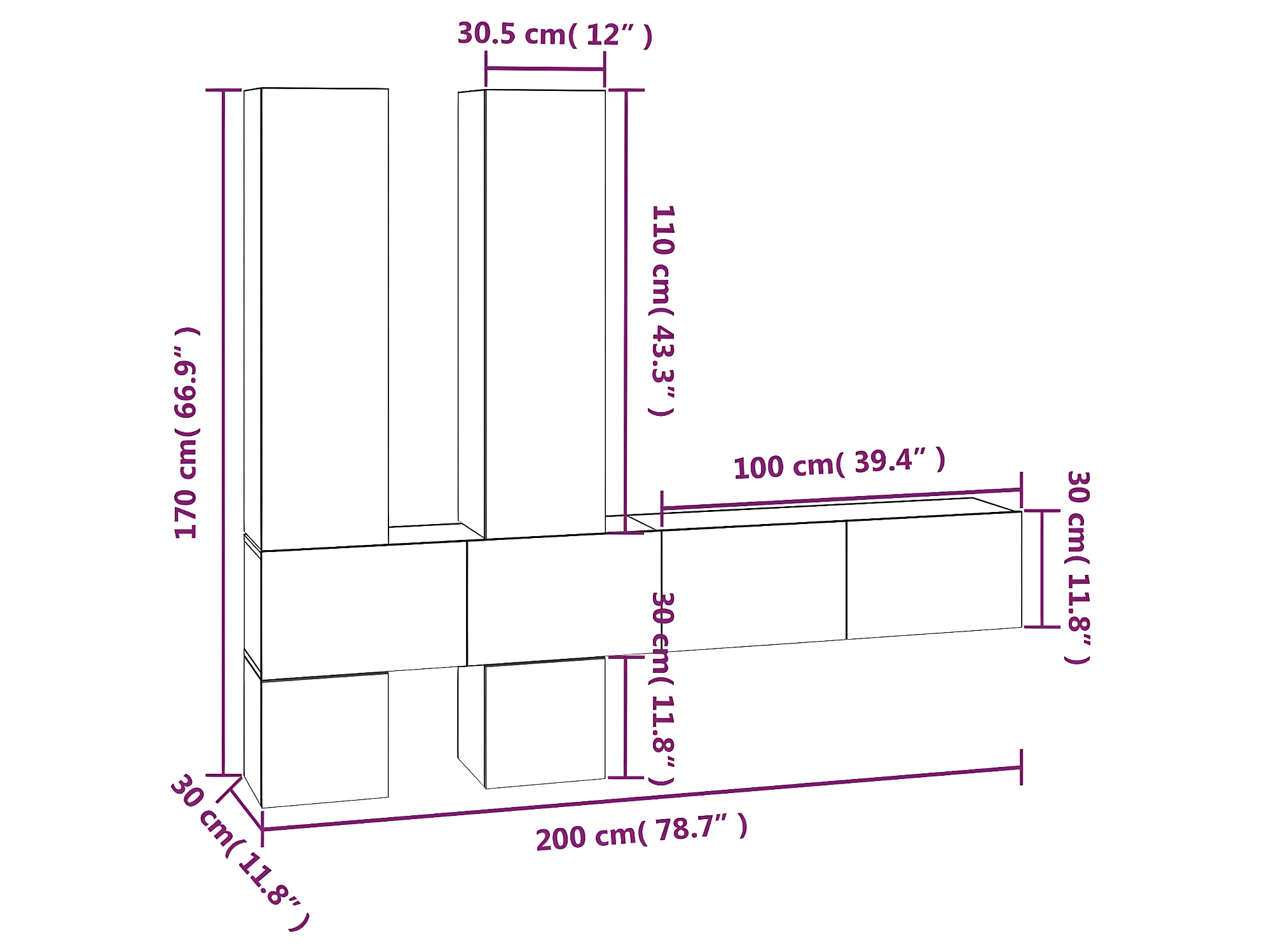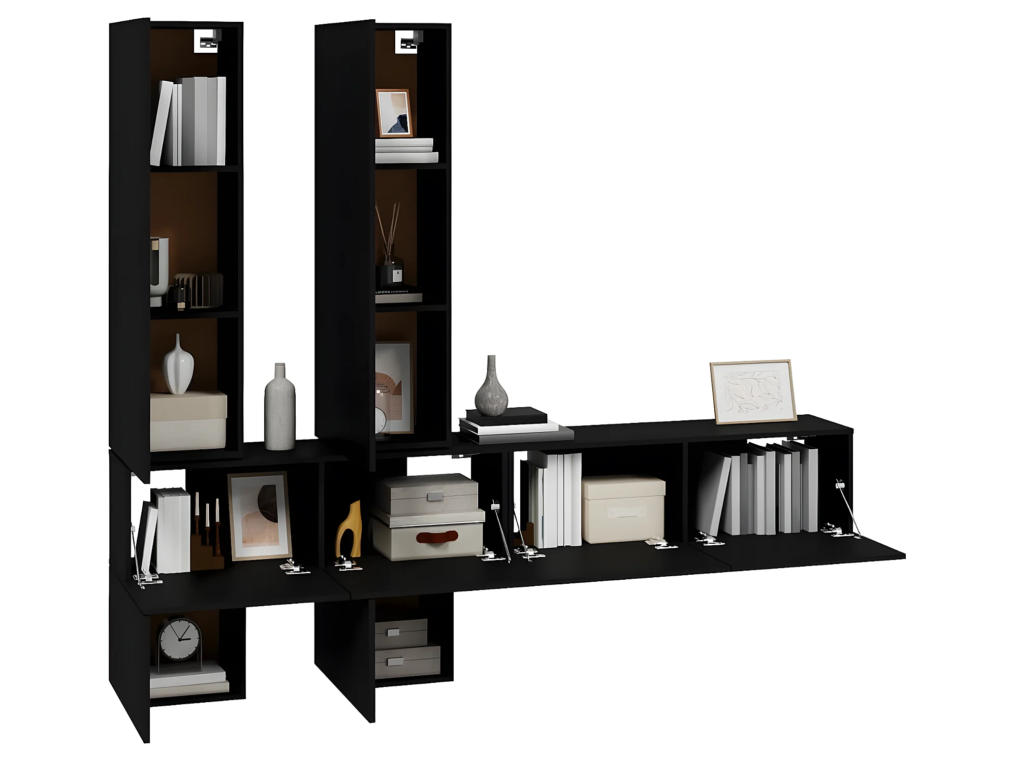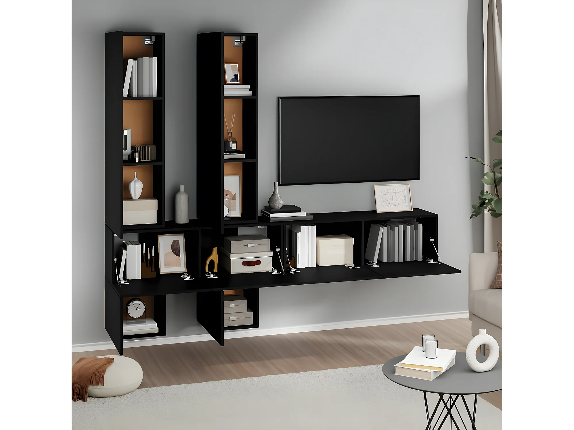 Meuble TV mural Noir Bois d'ingénierie