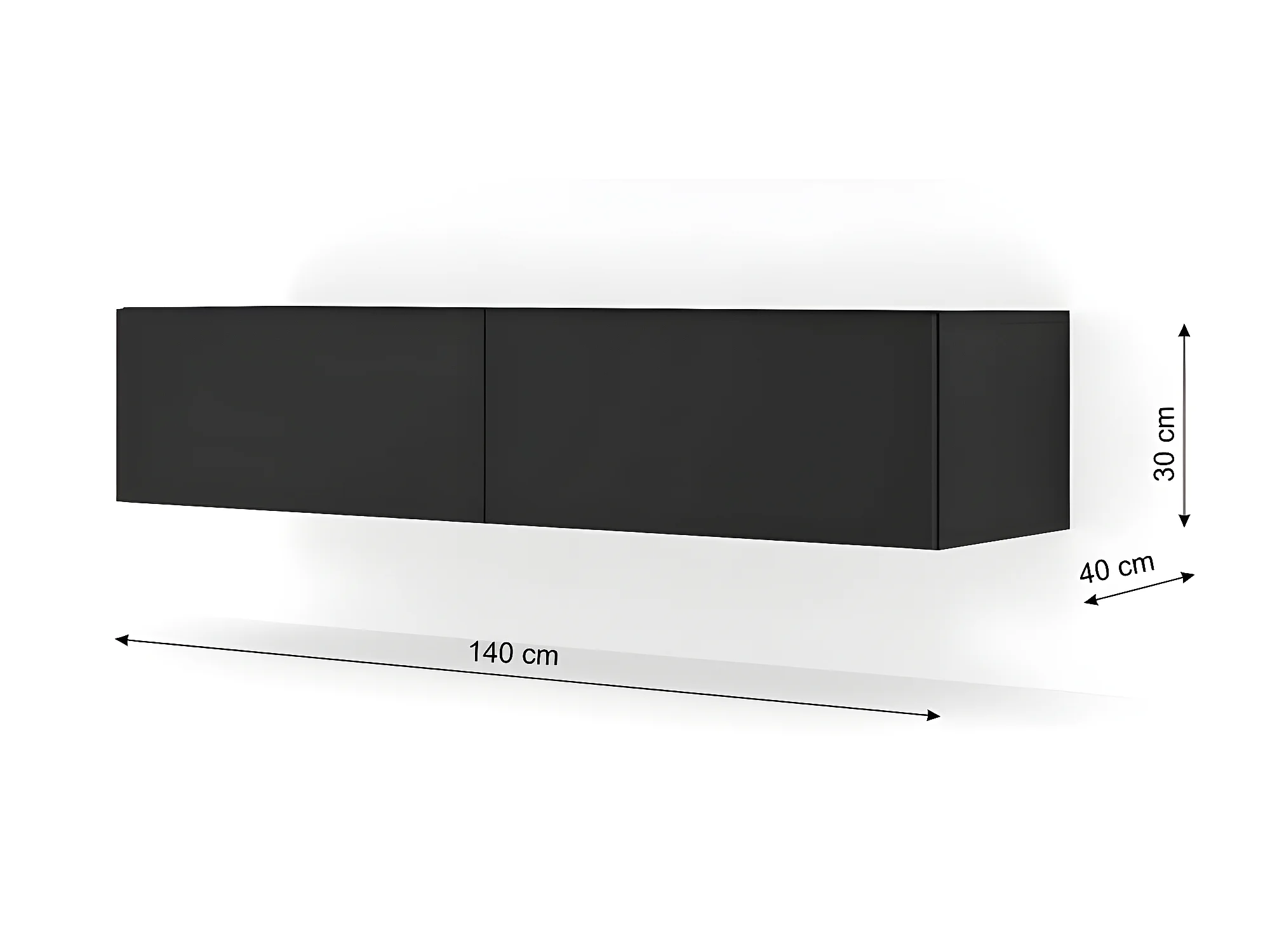 Meuble TV Mural Noir mat 140x40x30 cm Bingo meuble Hi-fi sideboeard commode à suspendre