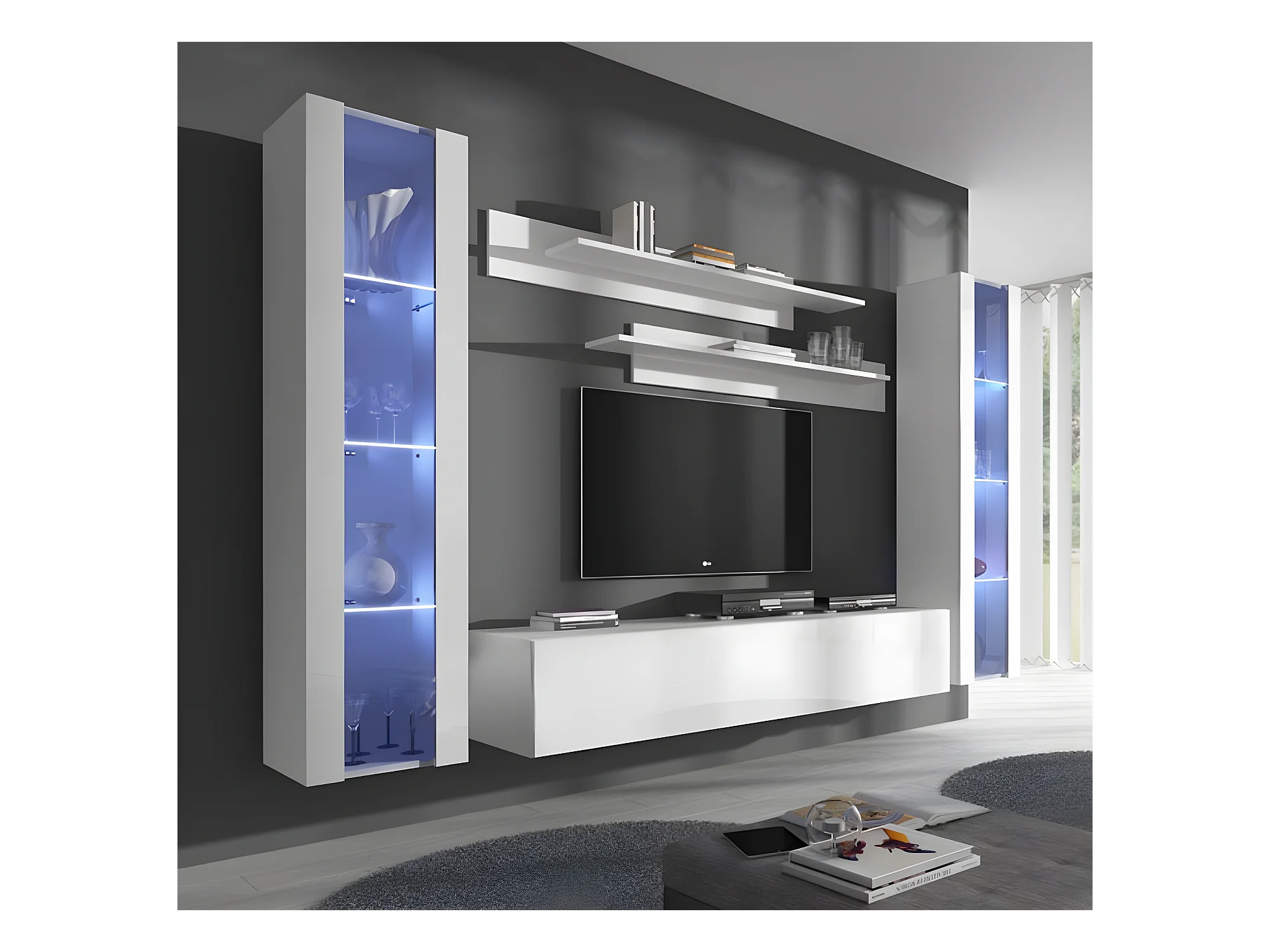 Meuble tv mural pour Salon Salle à manger en Blanc avec LED 260x40x160cm Nora 8