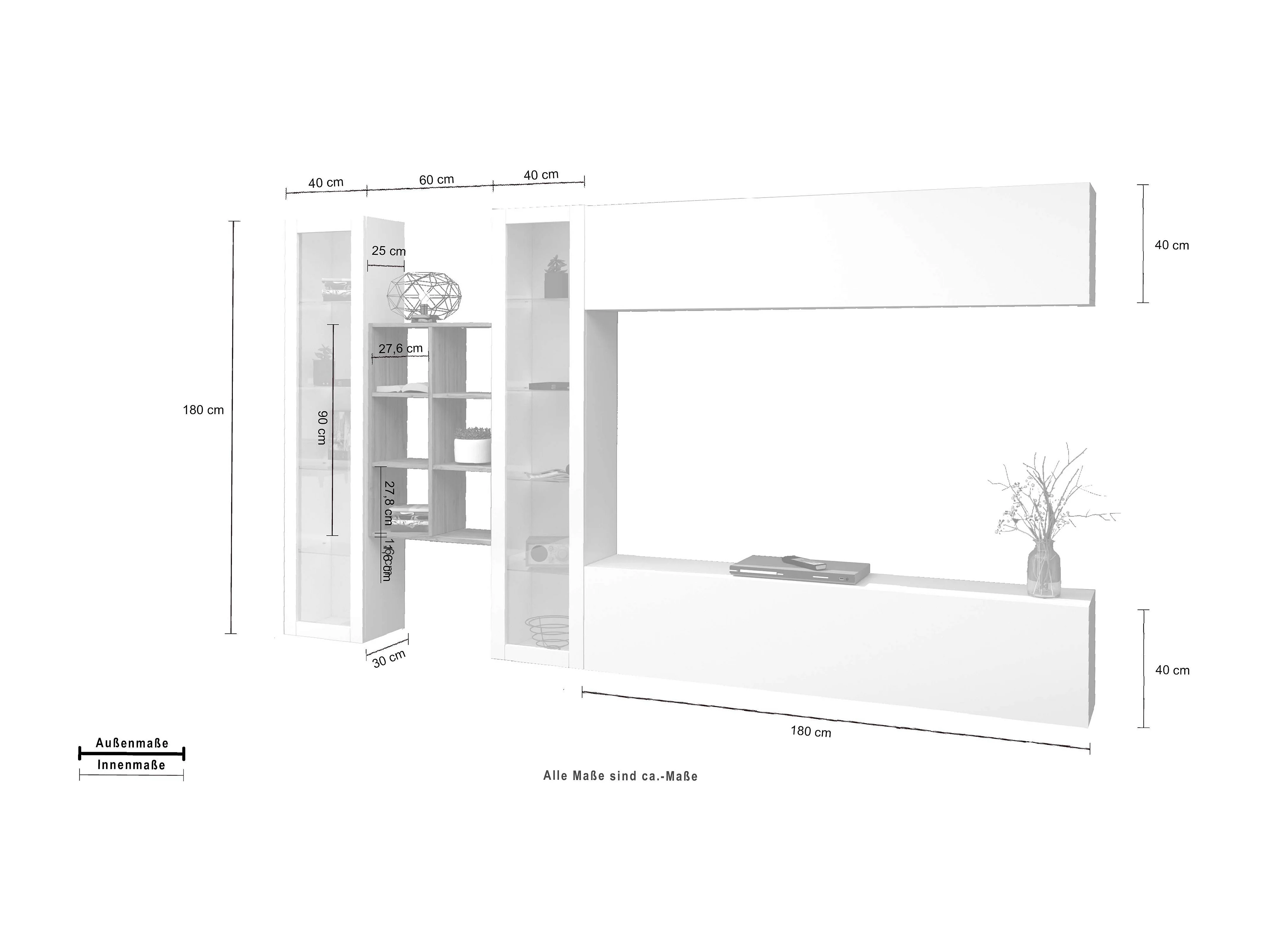 Meuble TV mural suspendu blanc bibliothèque 2 vitrines Kary WH