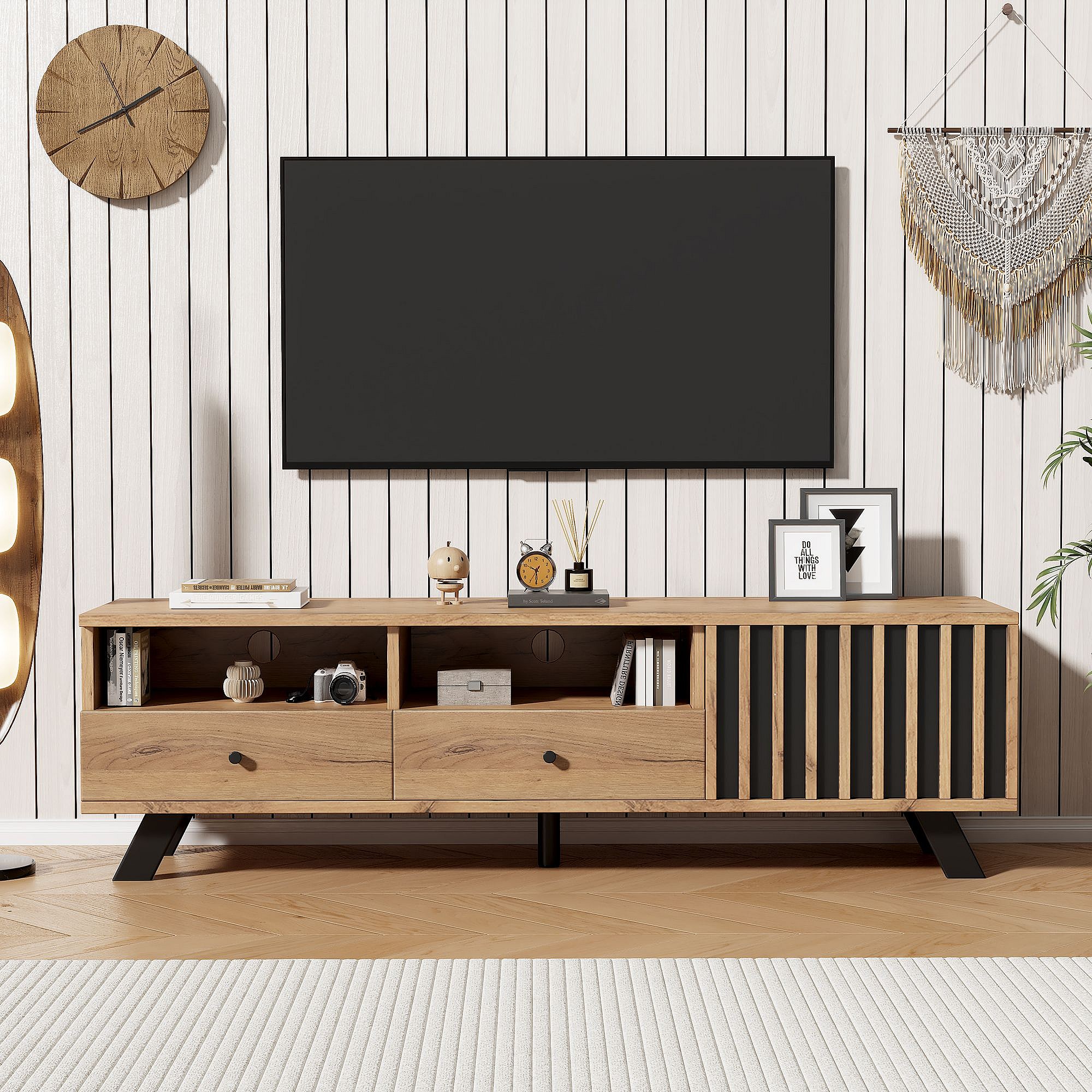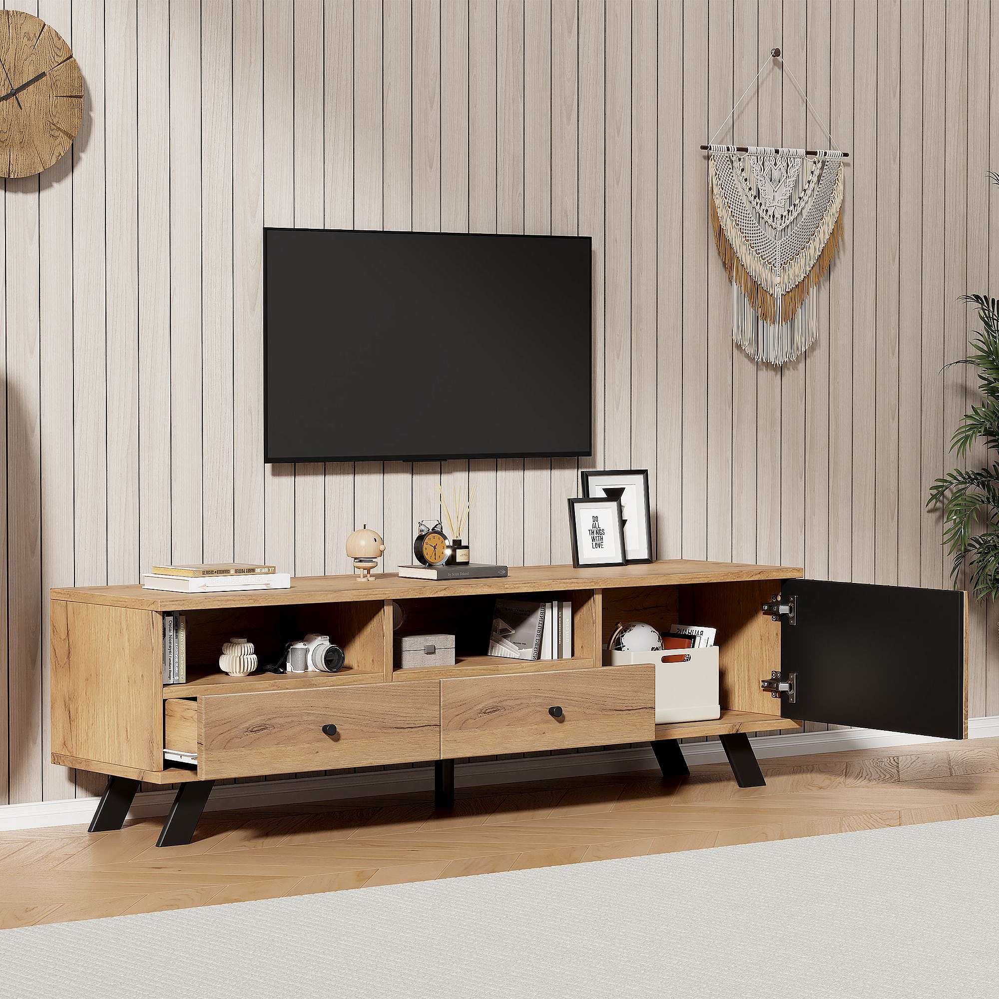 Meuble TV naturel avec 1 porte et 2 tiroirs de rangement - pour salon et bureau