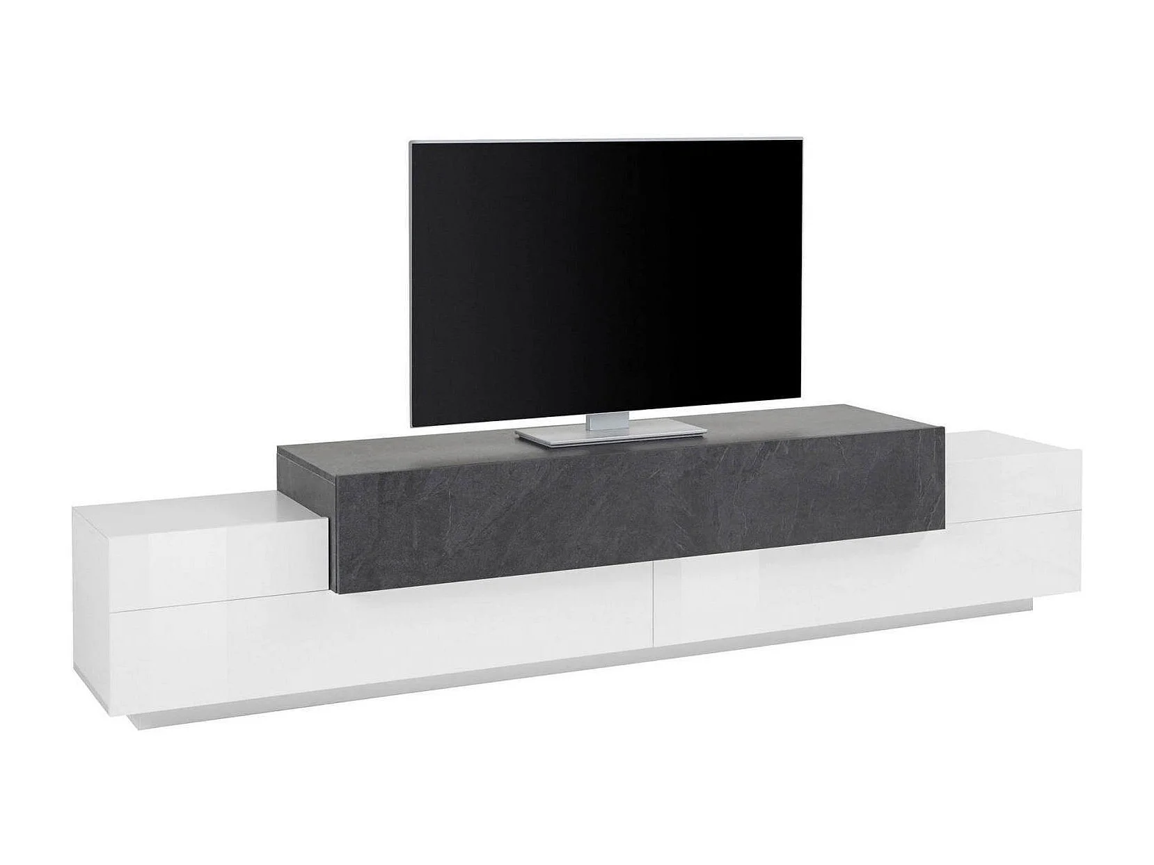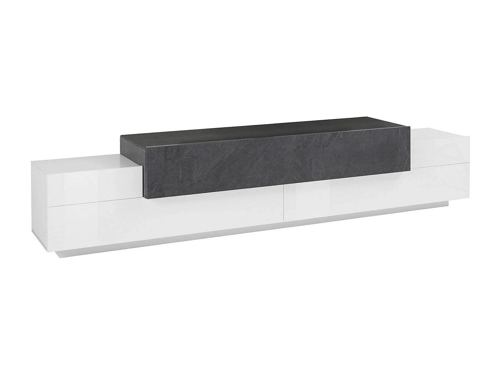 Meuble TV Nico, Buffet bas de salon, Base pour meuble TV, 100% Made in Italy, 240x45h52 cm, Blanc brillant et ardoise