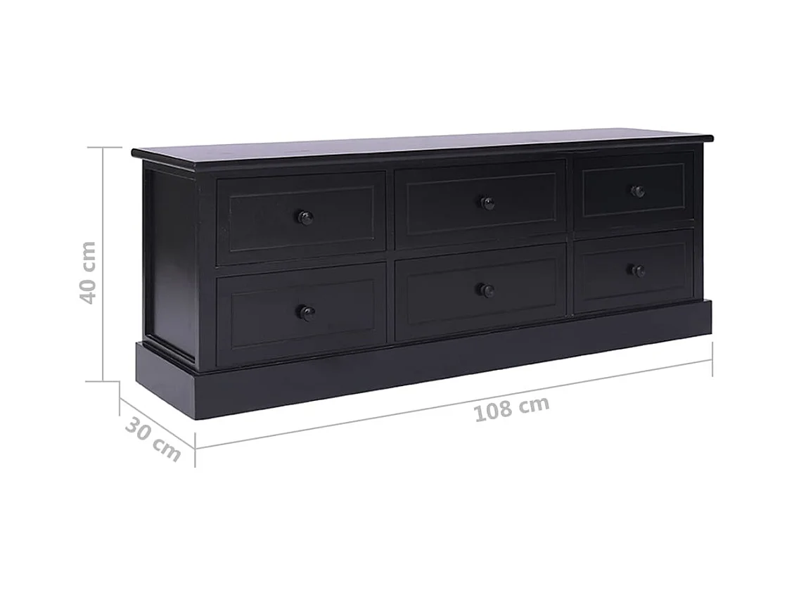 Meuble TV Noir 108x30x40 cm Bois de Paulownia solide