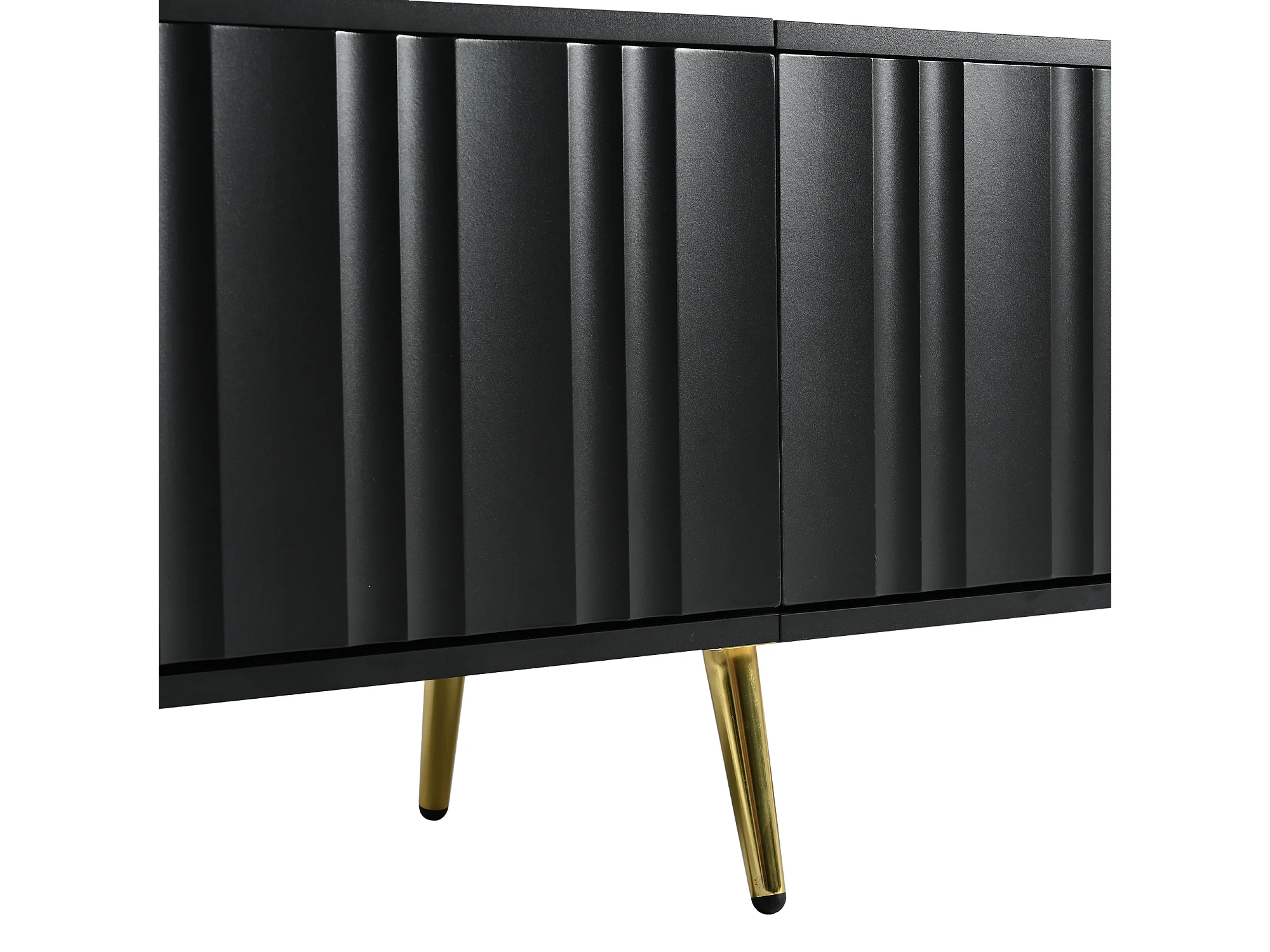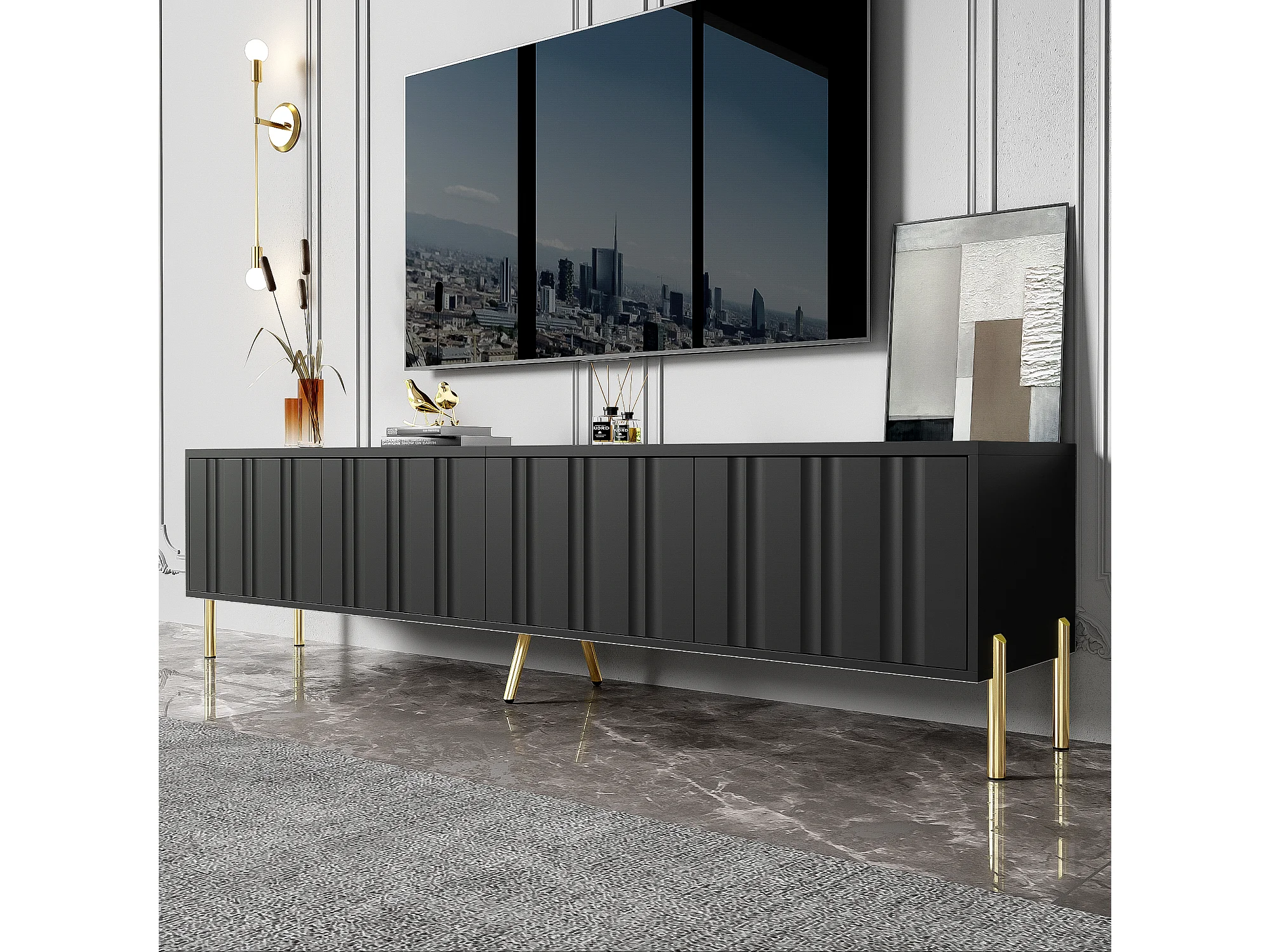 Meuble TV noir, 190 cm (L) x 38 cm (l) x 48 cm (H), pieds de table dorés