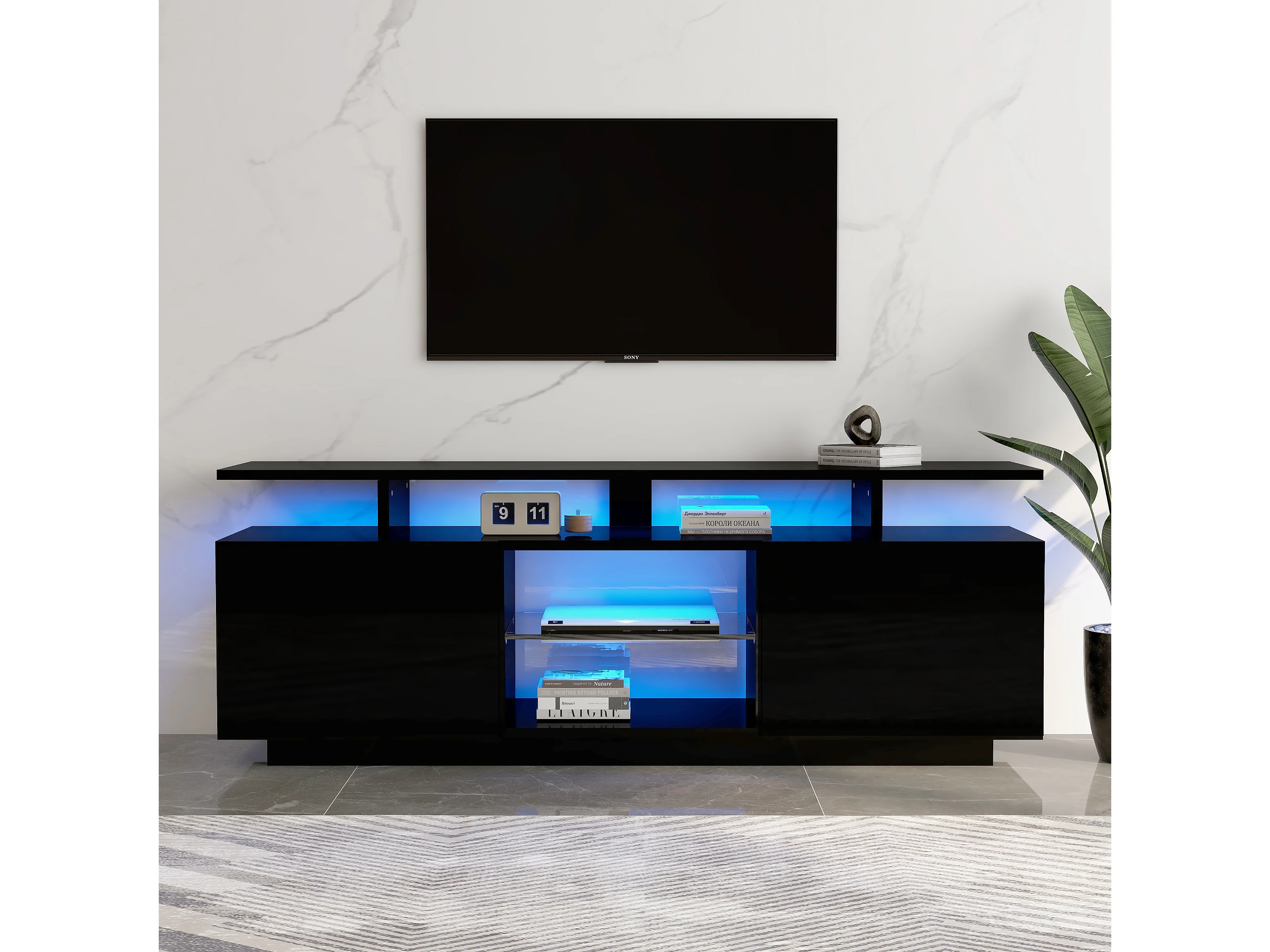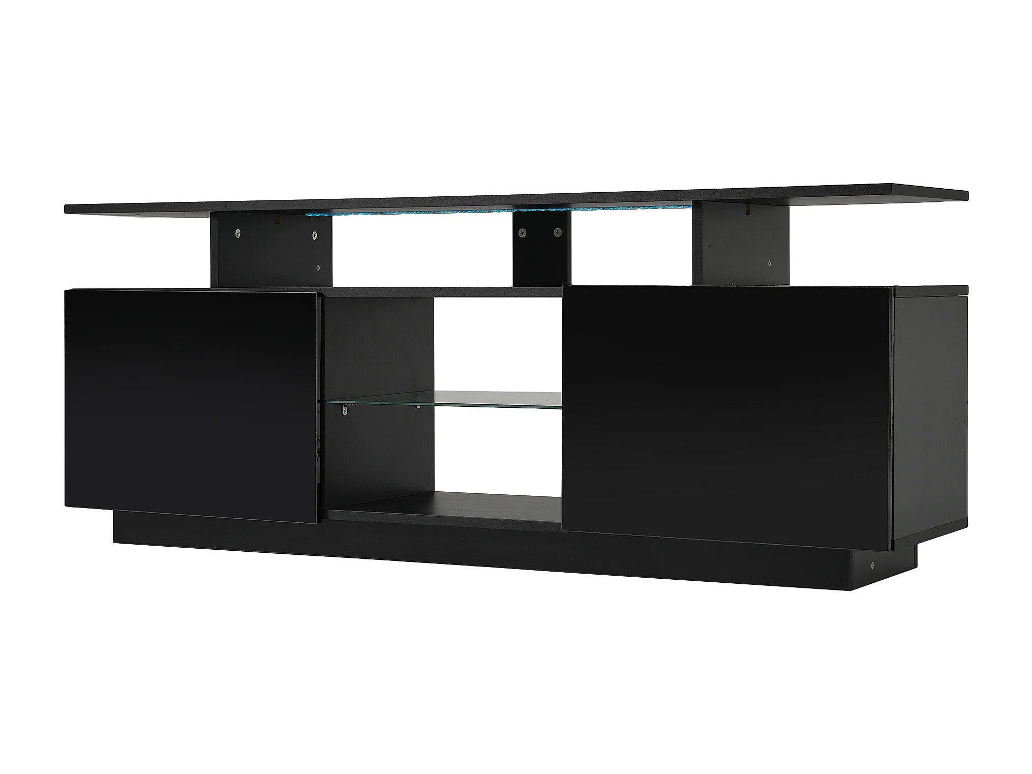 Meuble TV noir avec éclairage LED 16 couleurs et 2 portes - pour  40 à 49 pouces télé