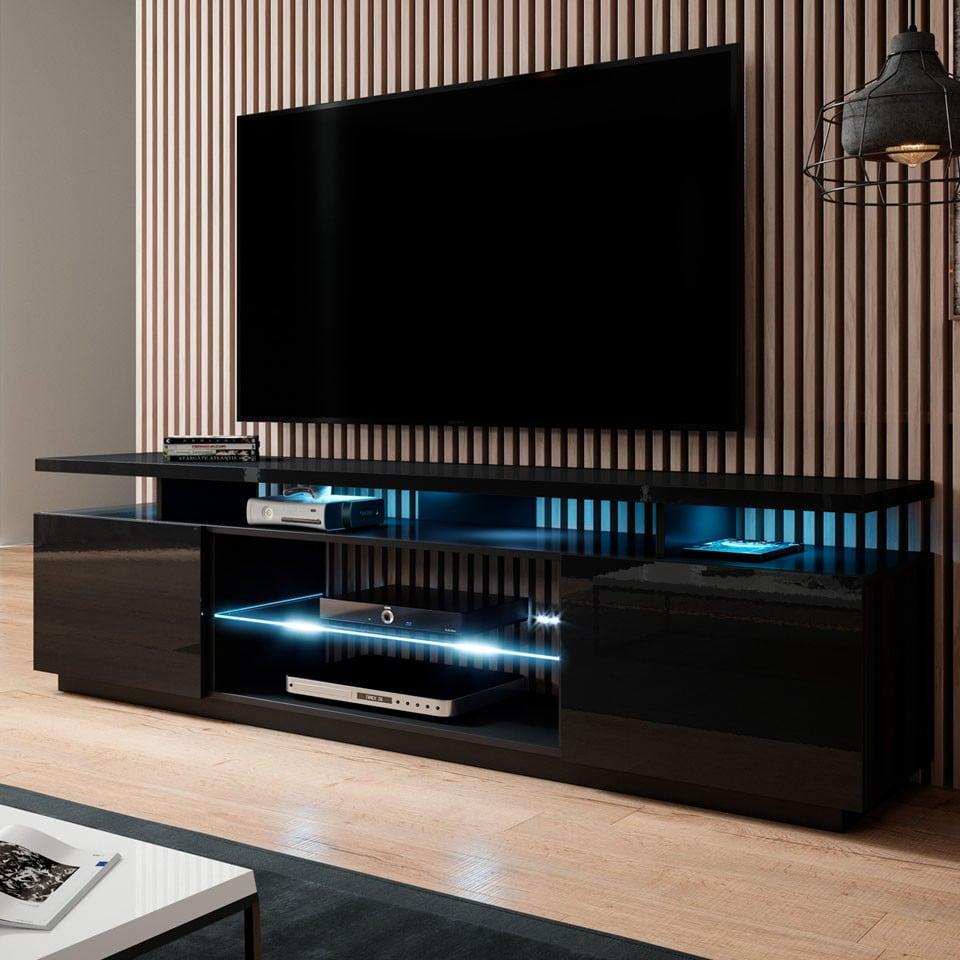 Meuble TV noir brillant 180 cm à LED Zohra - bleu