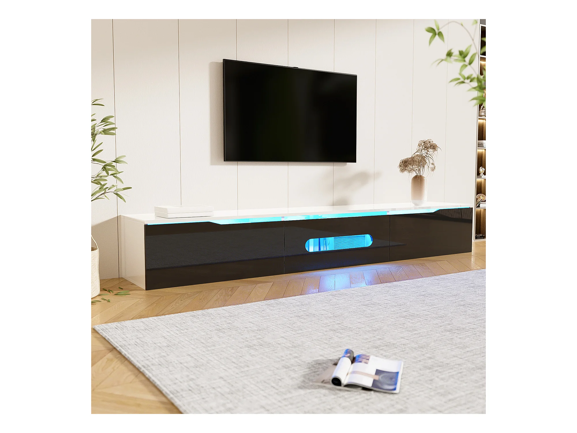 Meuble TV noir et blanc, 180 cm, surface laquée, avec éclairage LED 16 couleurs, montable au mur