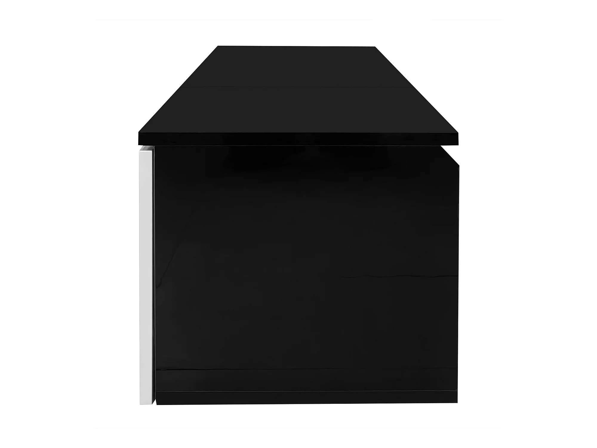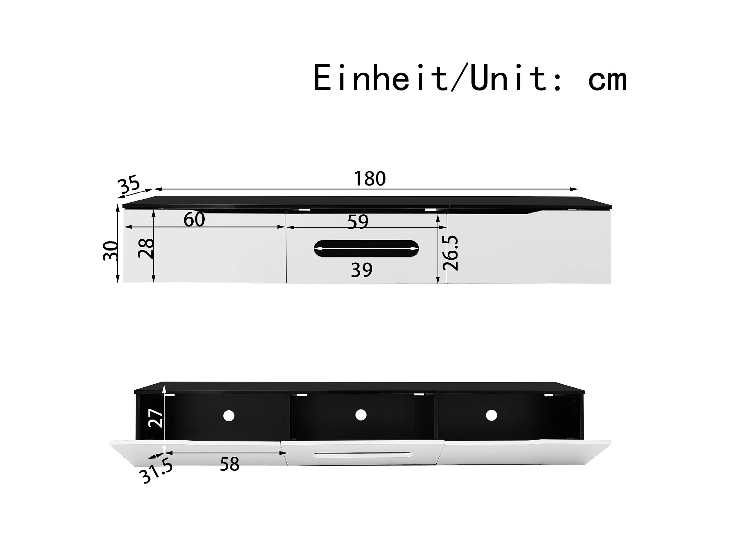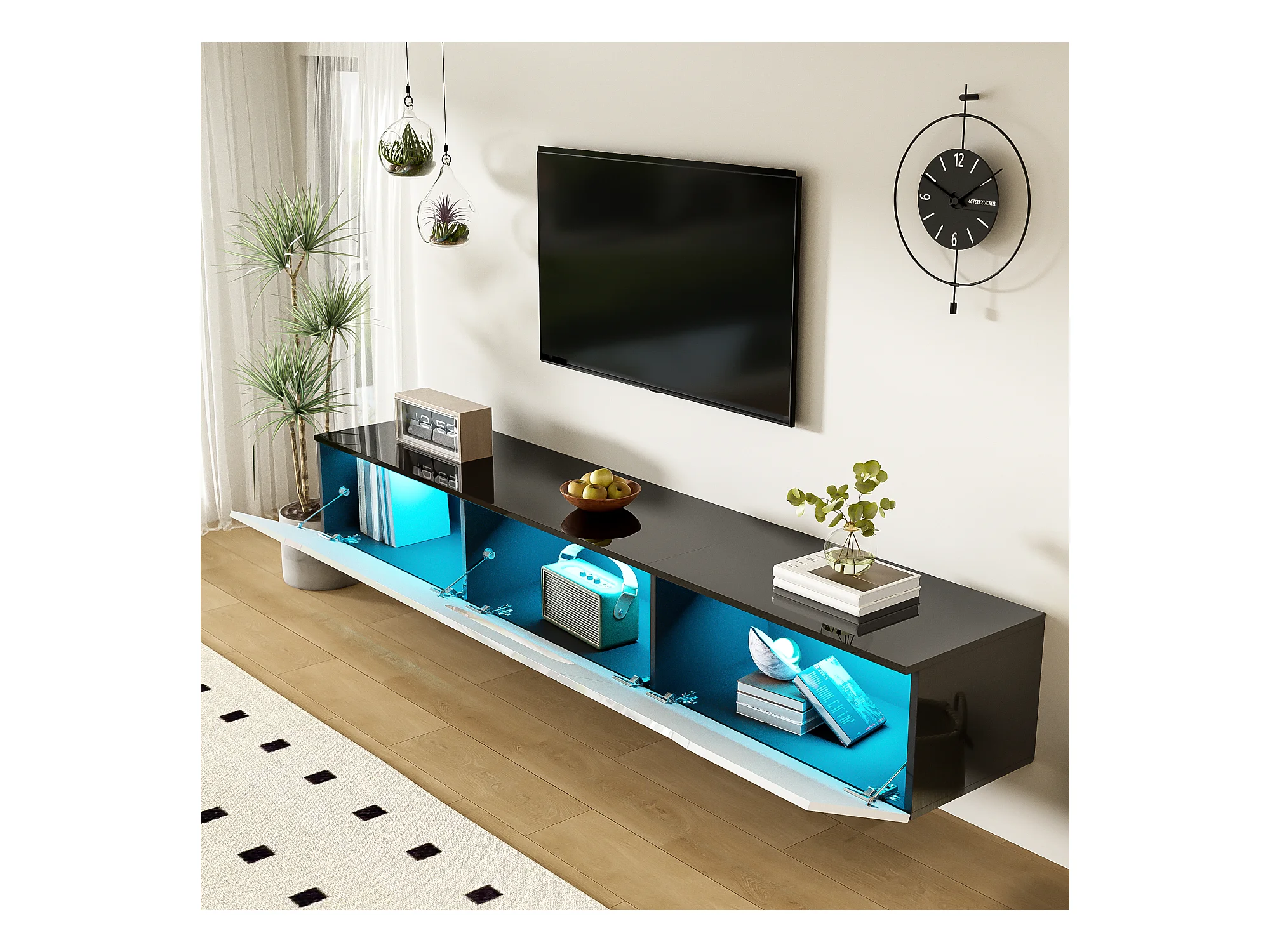 Meuble TV noir et blanc, 180 cm, surface laquée, avec éclairage LED 16 couleurs, montable au mur