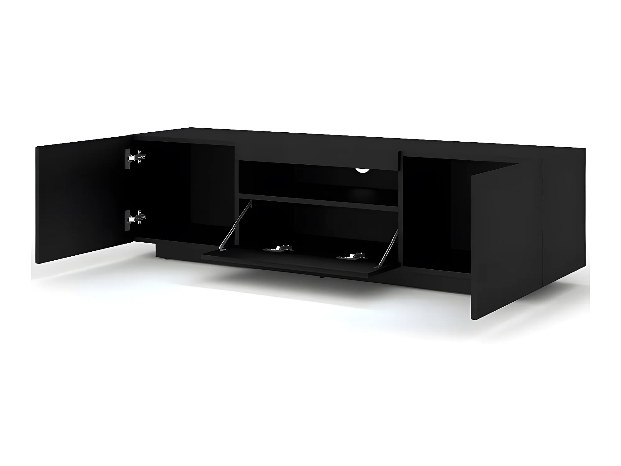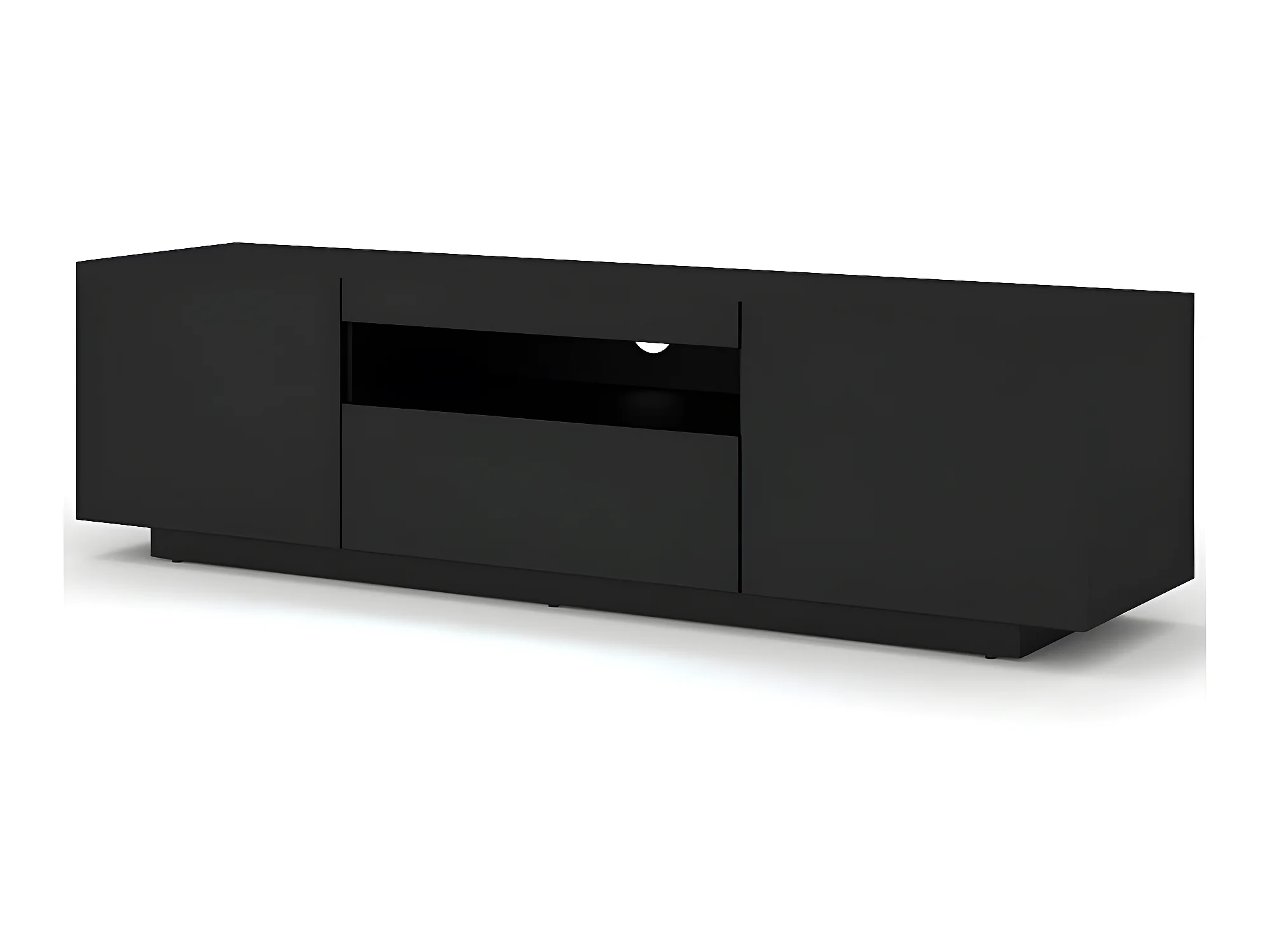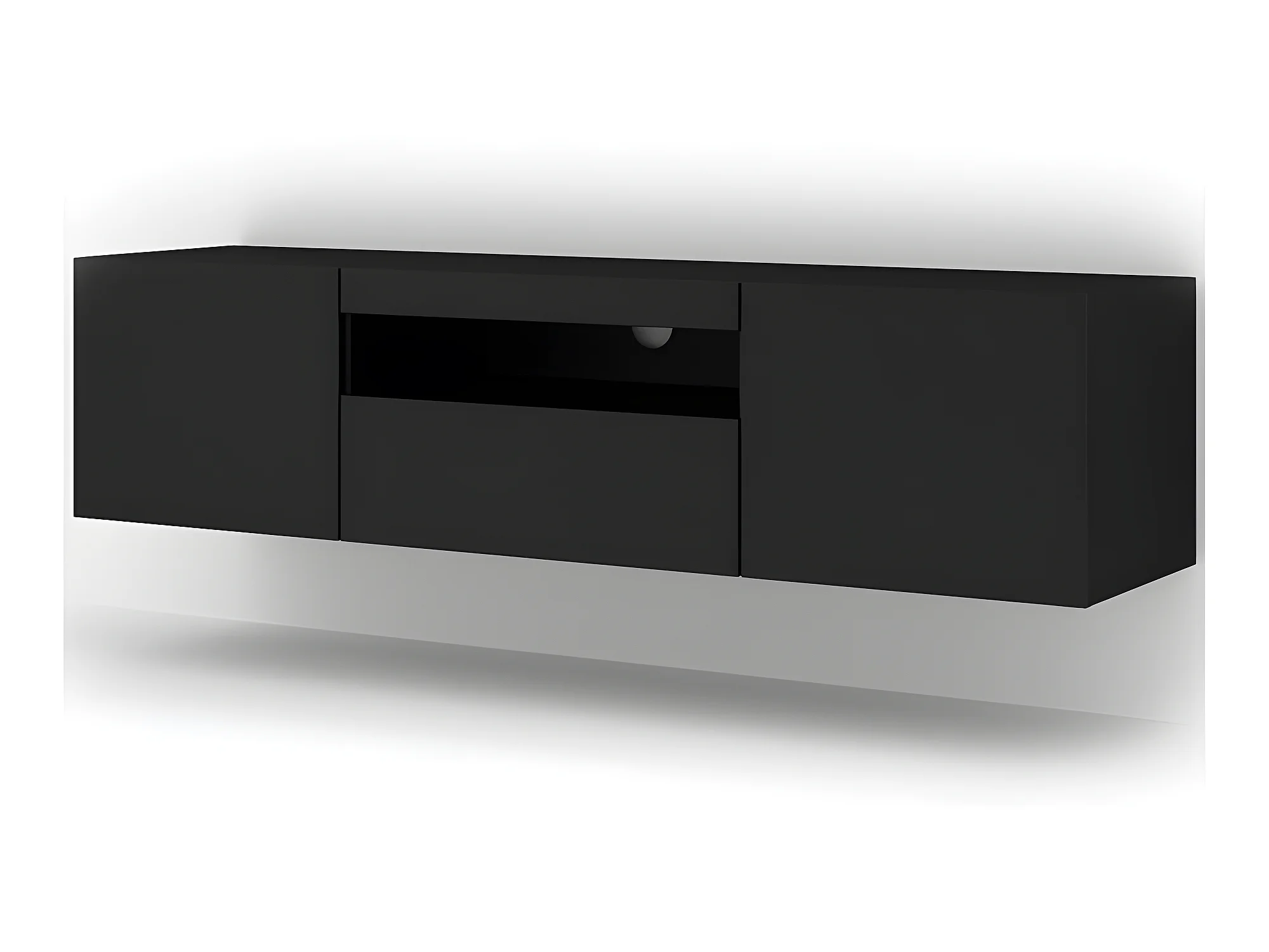 Meuble TV Noir Mat sans LED 150x42x37cm Aura meuble sur pied ou a suspendre meuble Hi-fi