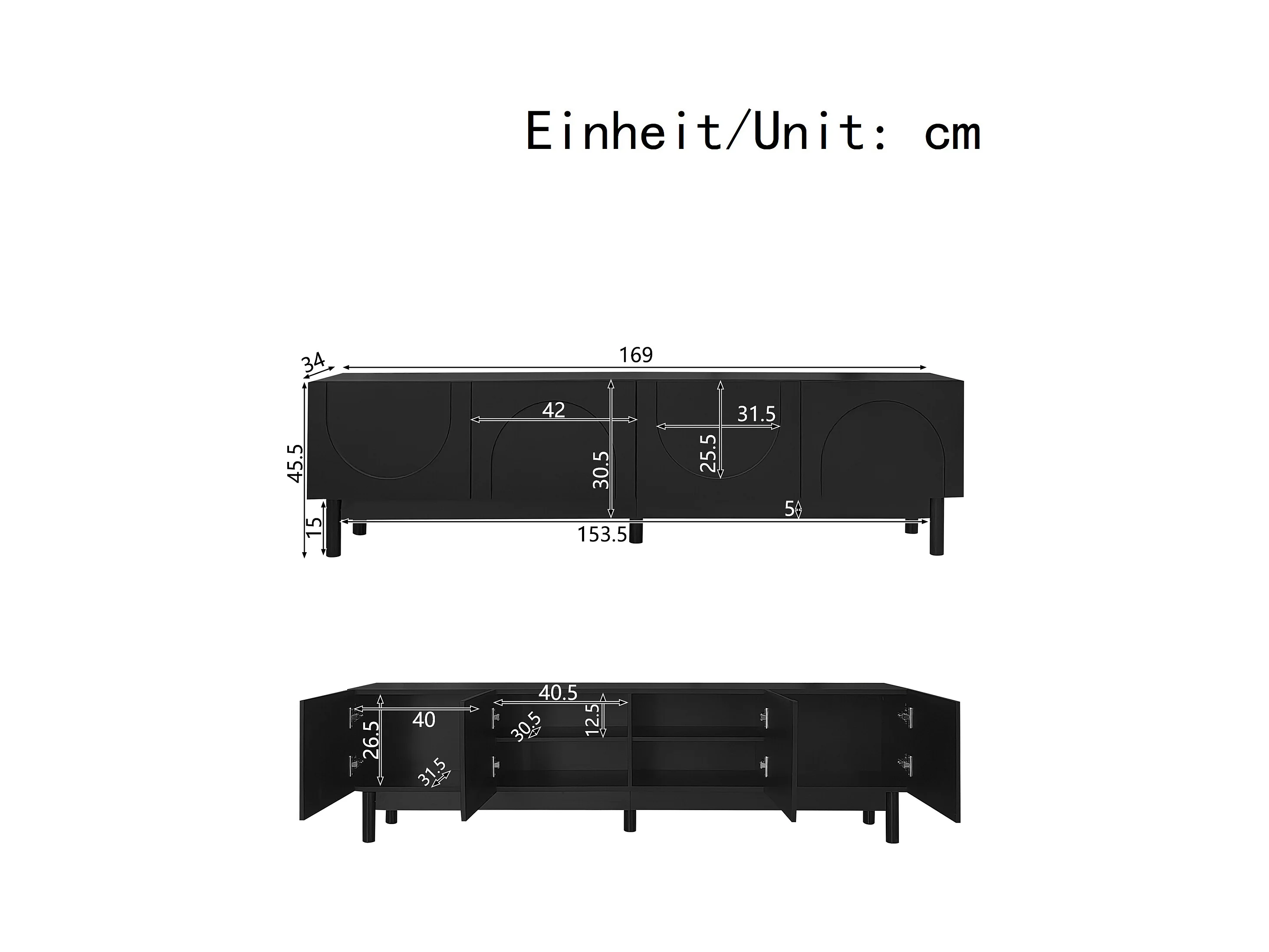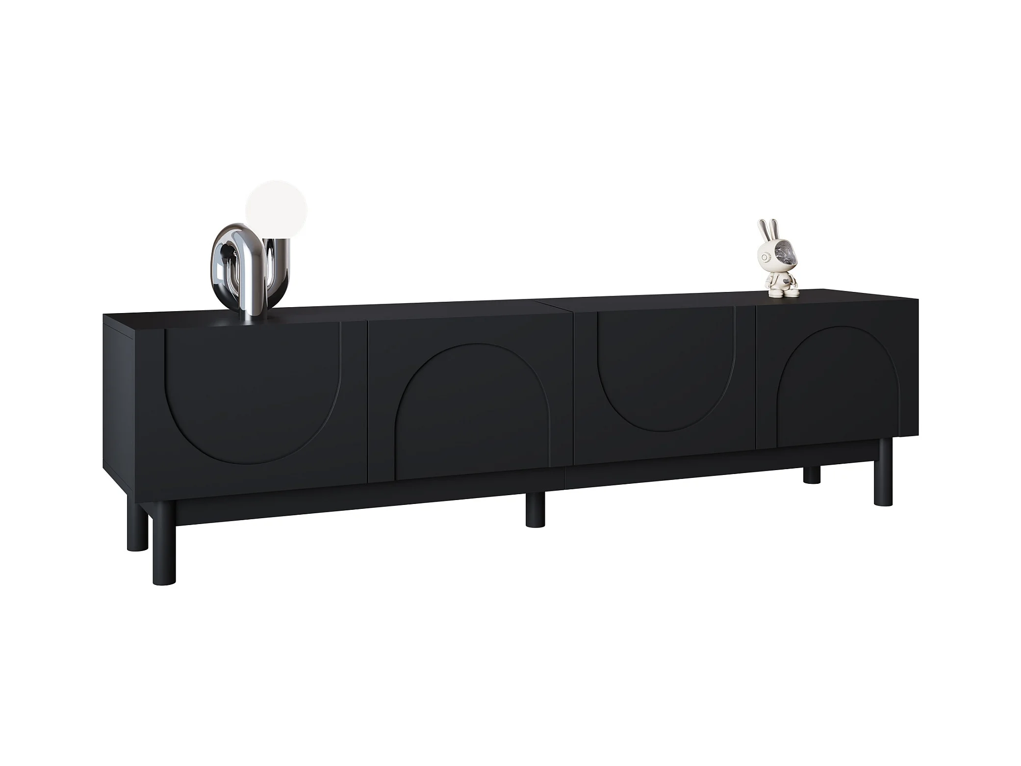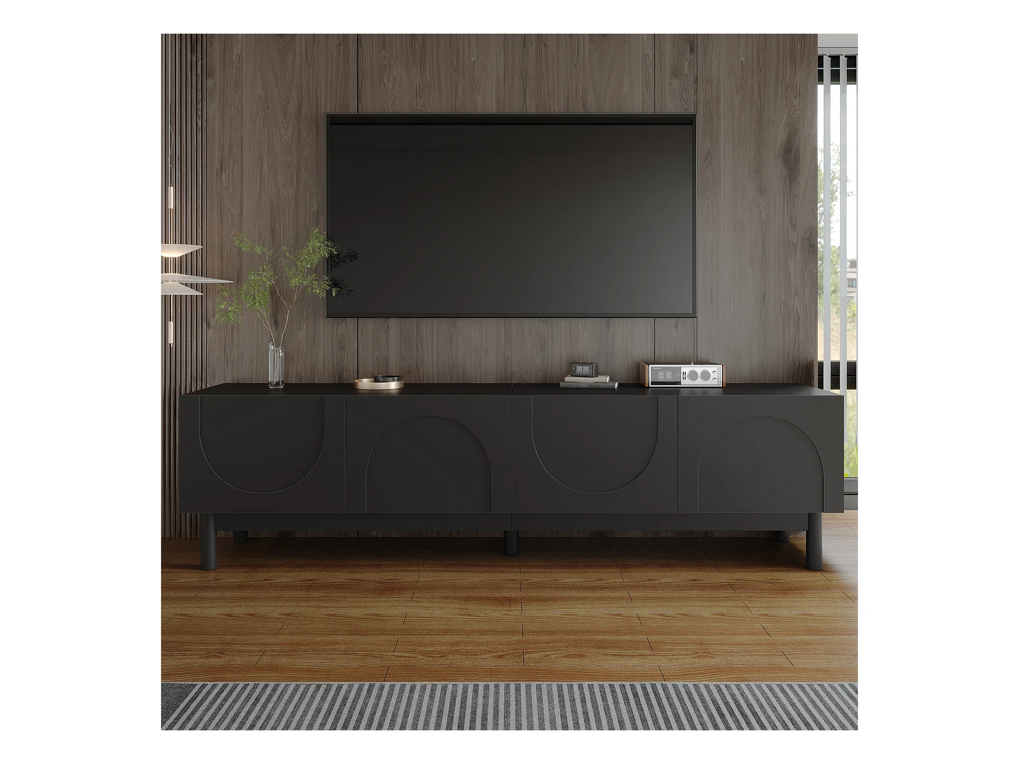 Meuble TV noir - Meuble TV 4 portes à motif ondulé incurvé - pour salon