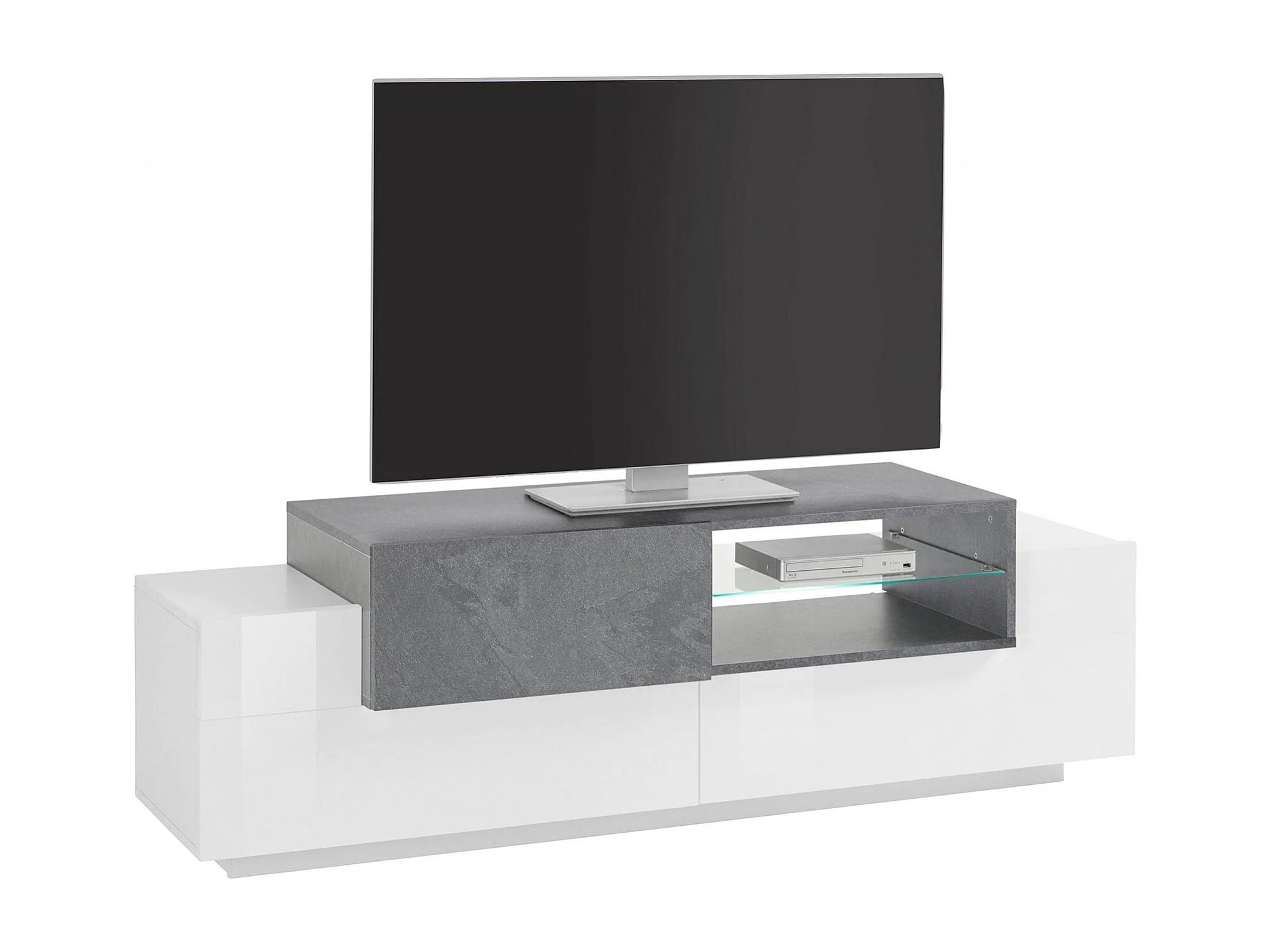 Meuble TV Pablo, Buffet bas de salon, Base pour meuble TV, 100% Made in Italy, 160x45h51 cm, Blanc brillant et ardoise