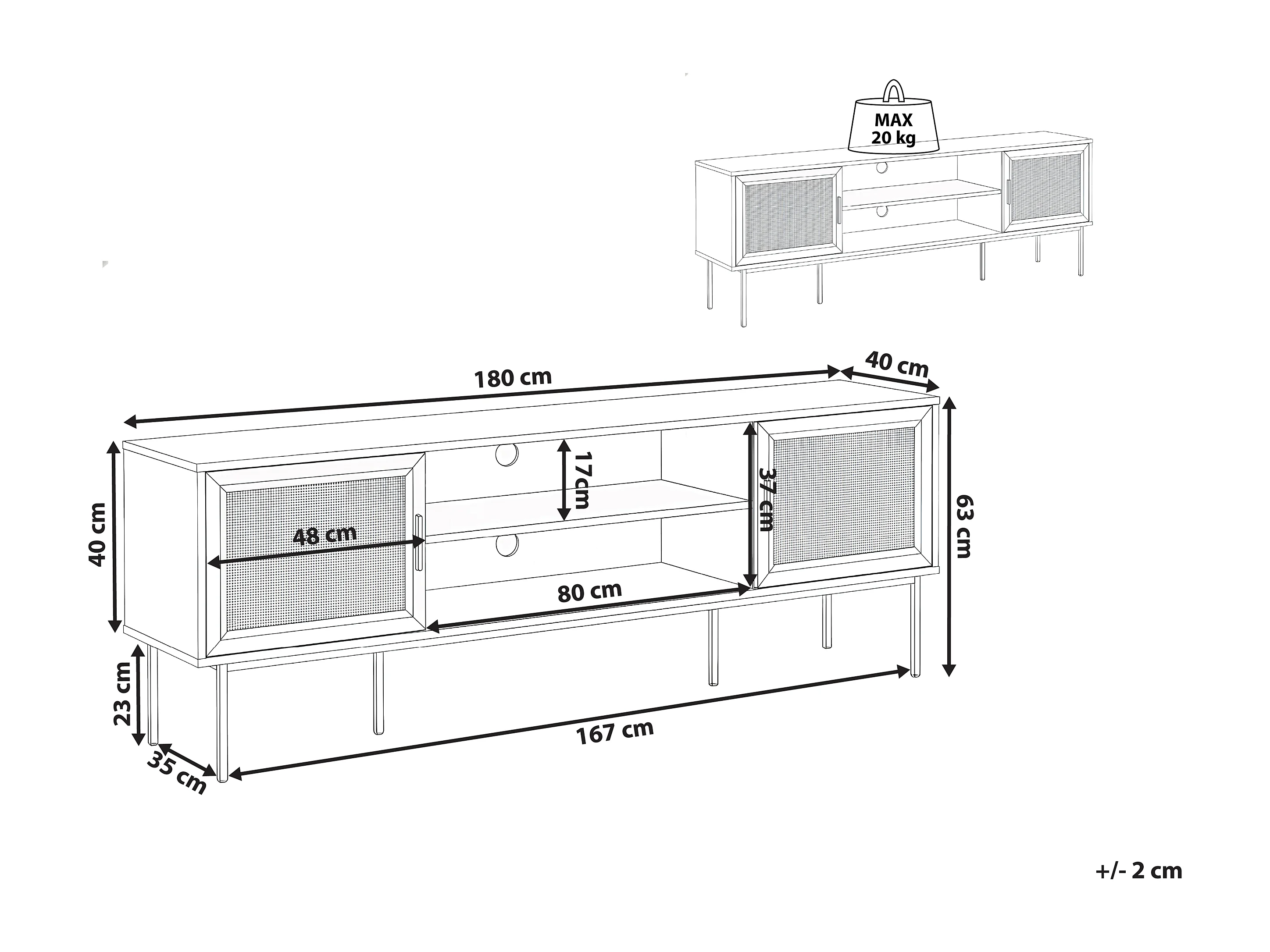 Meuble TV PASCO Rotin Marron clair