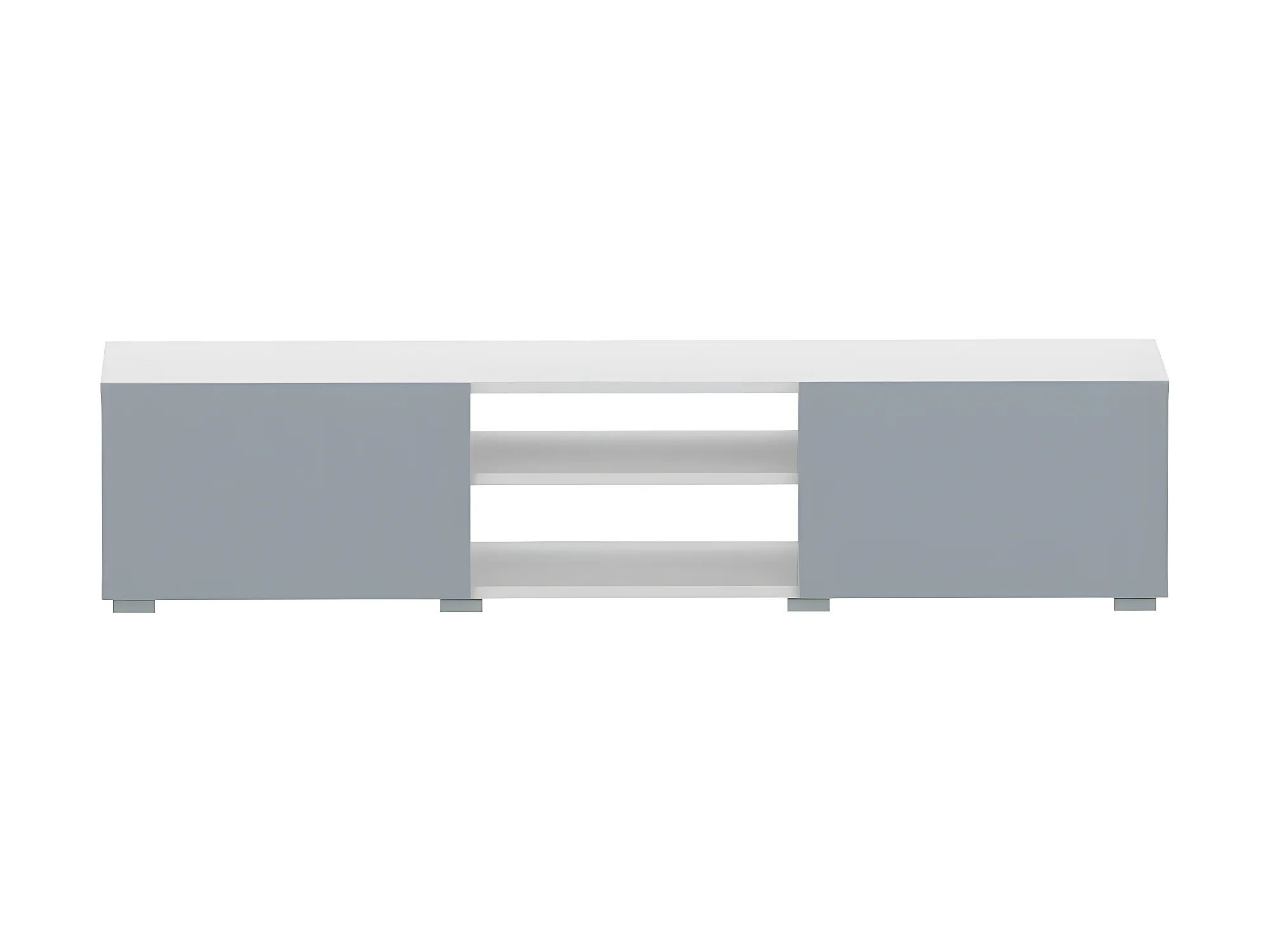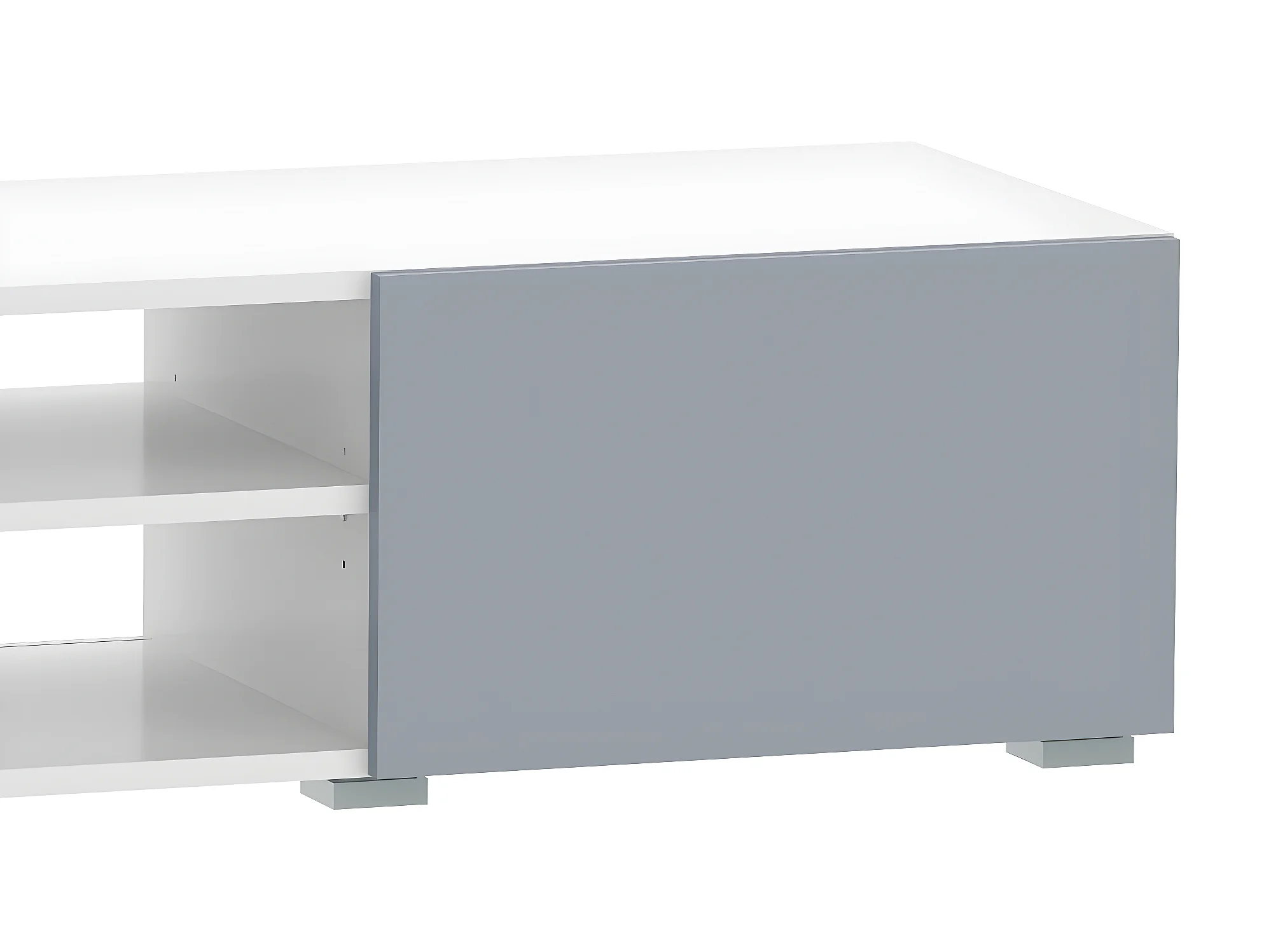 Meuble TV PODIUM 2 niches - blanc et gris céladon - TEMAHOME