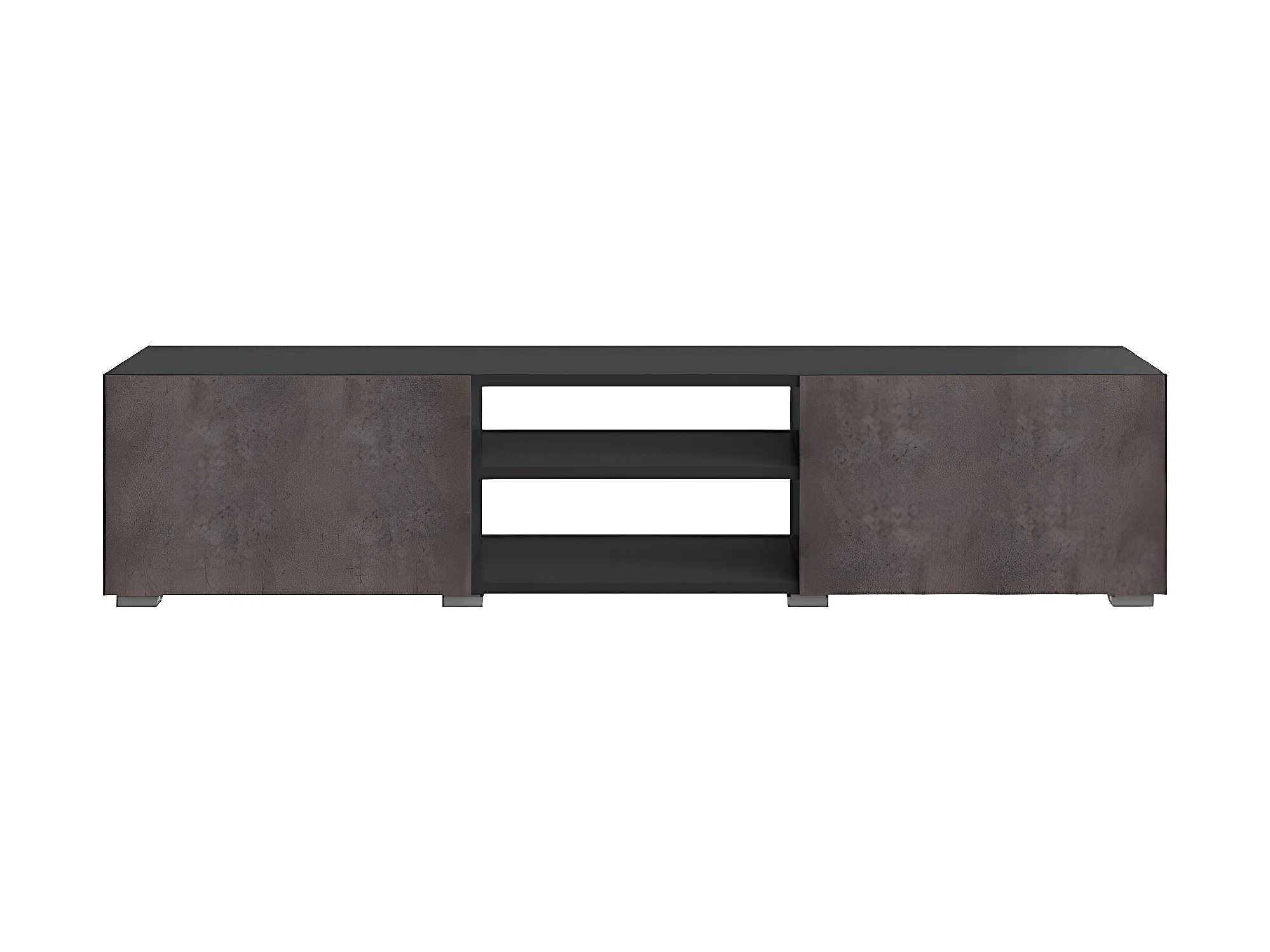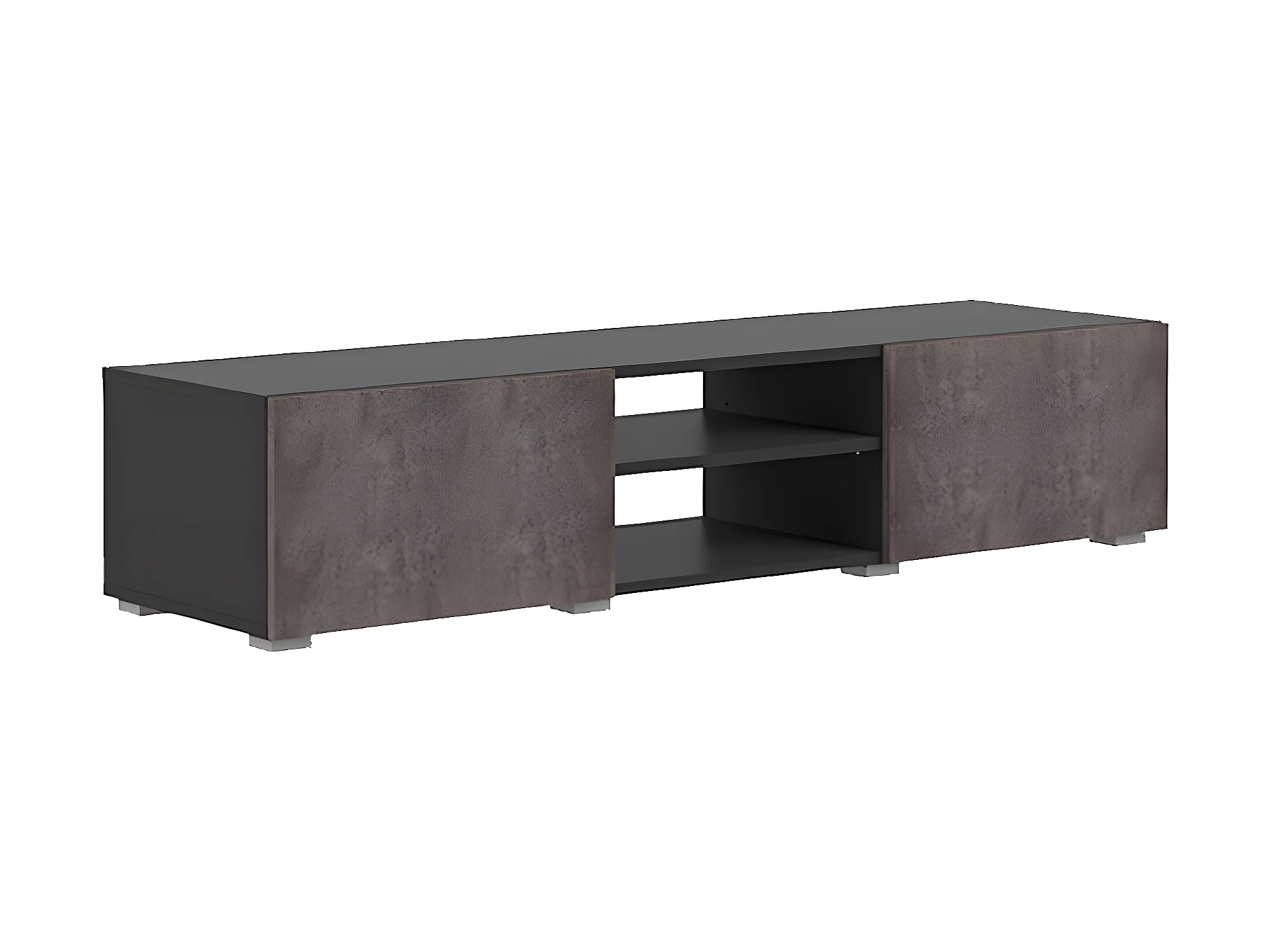 Meuble TV PODIUM 2 niches - noir et béton - TEMAHOME