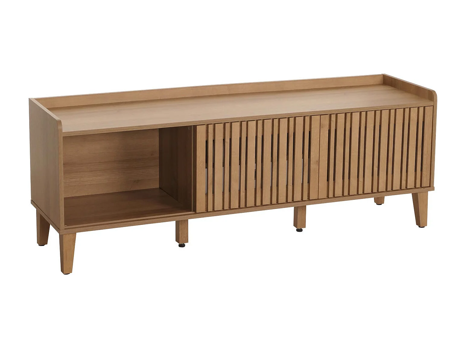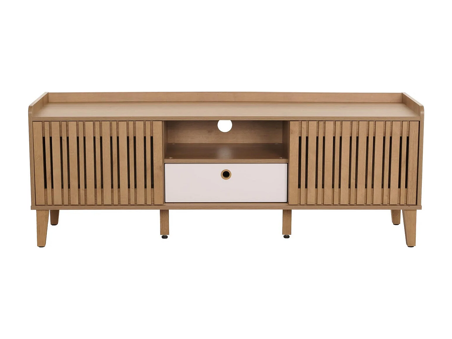 Meuble TV porte coulissante bois blanc 150 x 40 x 56 cm 04_0007870