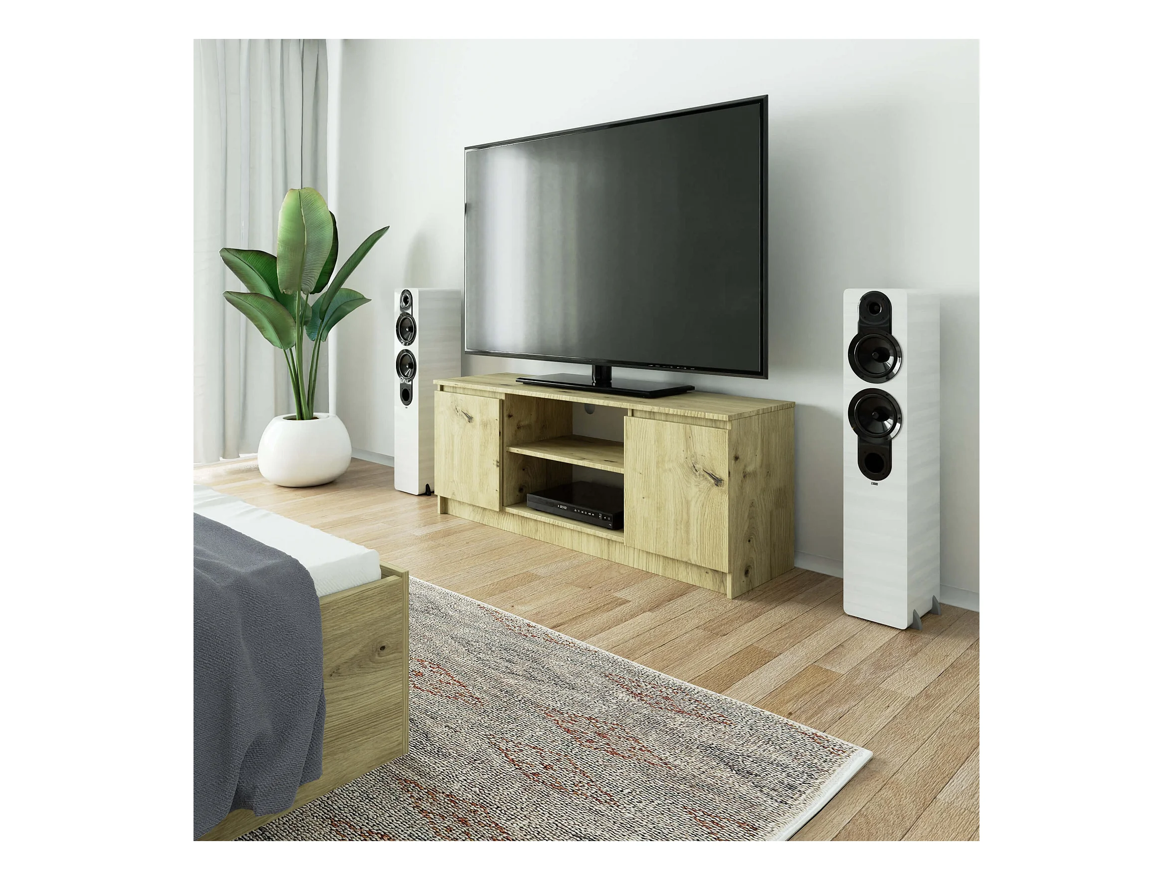 Meuble TV pour salon AKORD Chêne Artisan 140 cm 2 portes façade Chêne Artisan 2 étagères 140x40x55 cm