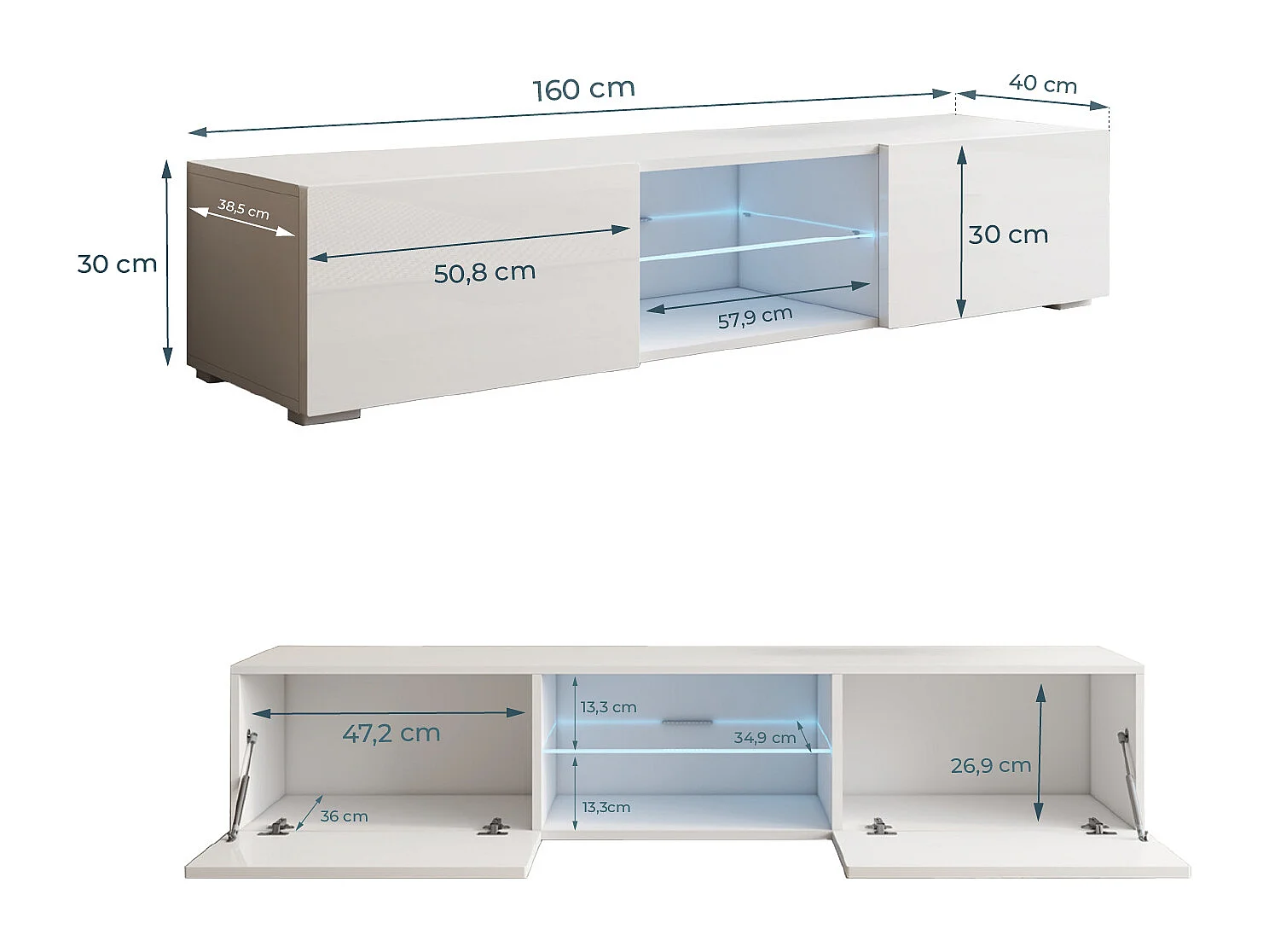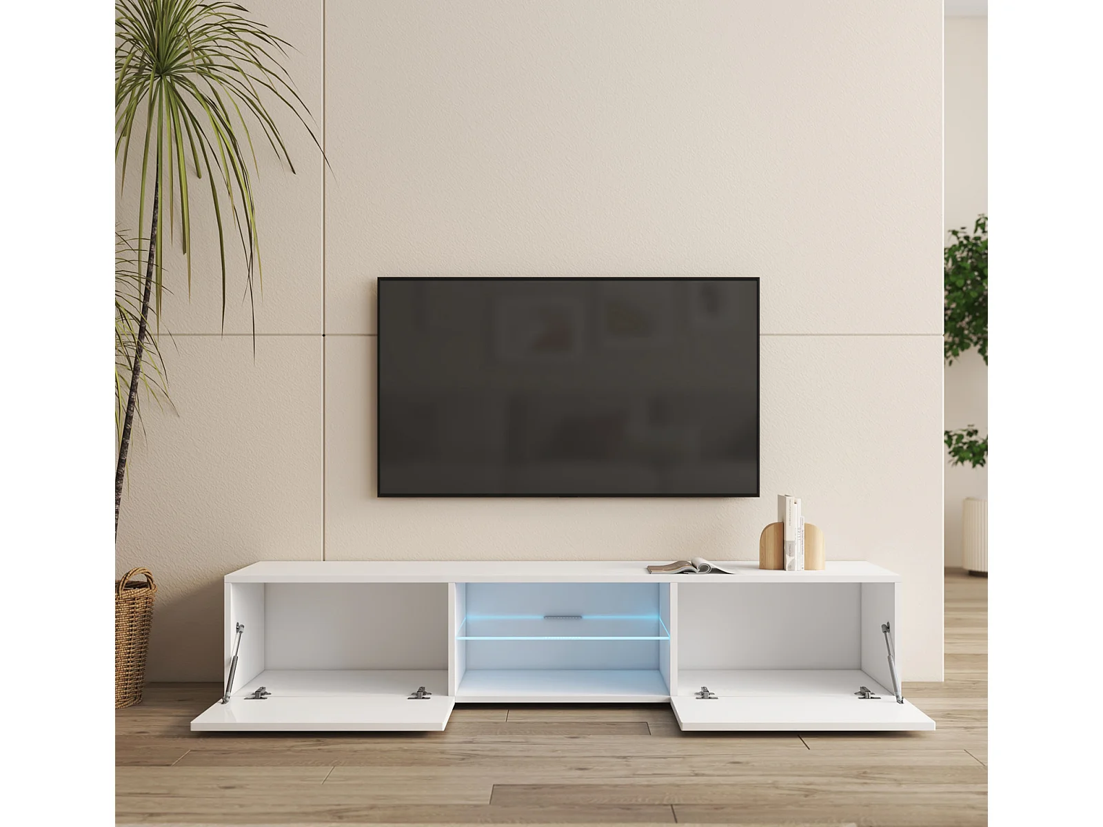 Meuble TV pour Salon Salle à manger en Blanc avec LED 160x38,5x32cm Tibi