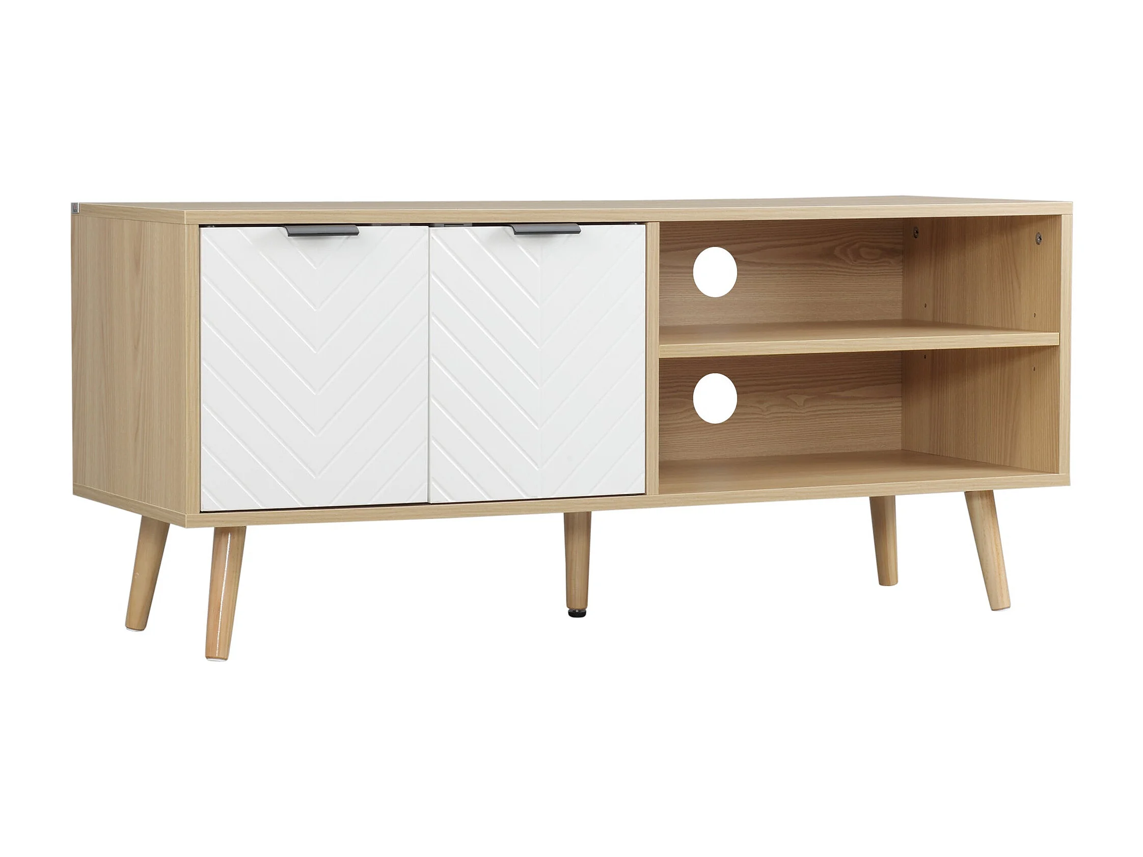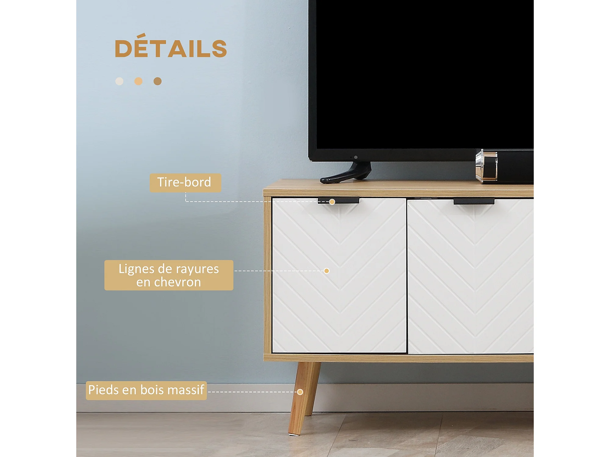 Meuble TV pour télévision jusqu'à 46 pouces design scandinave 2 portes 2 niches avec passe-câbles 110 x 39 x 48,8 cm