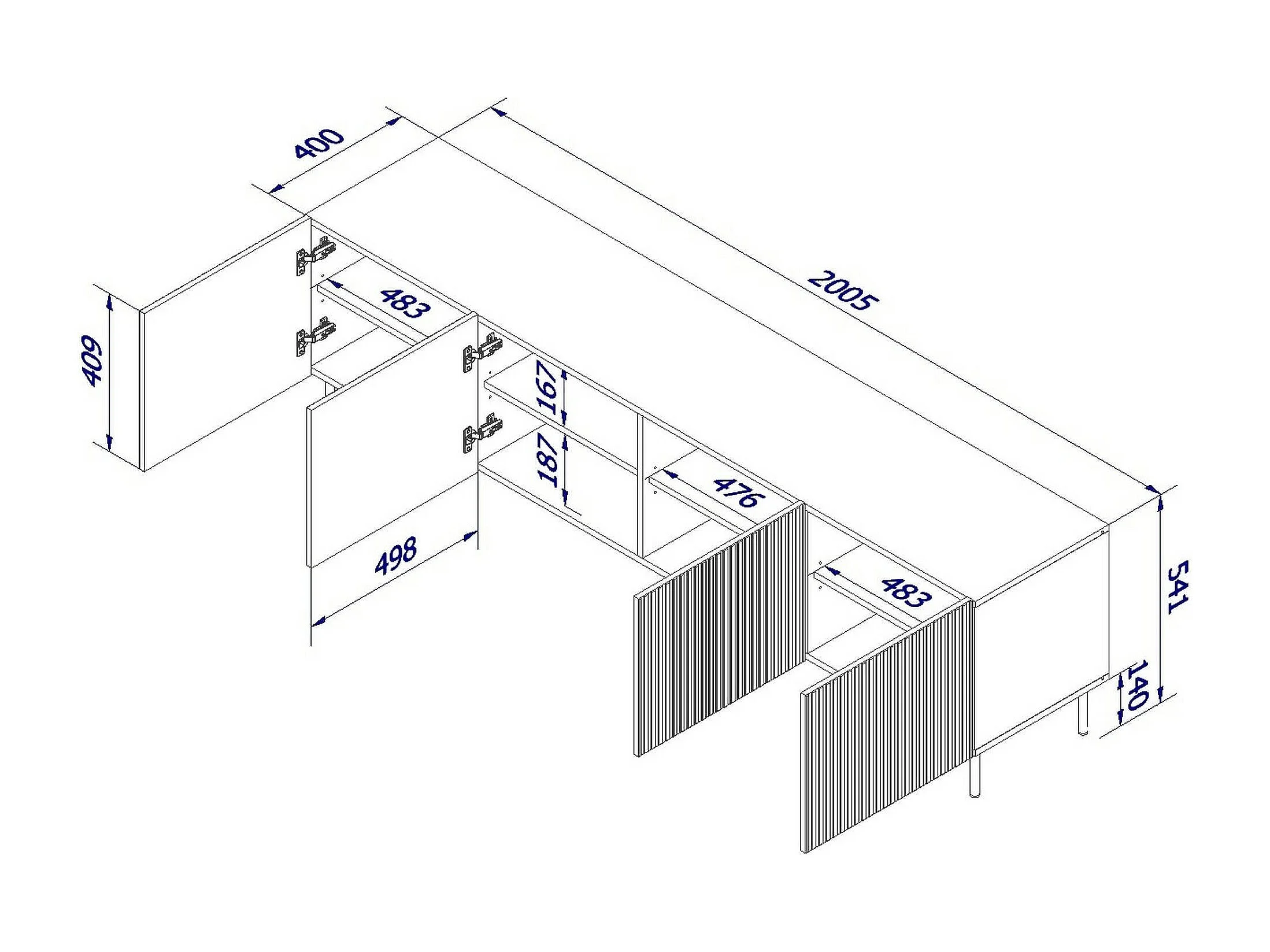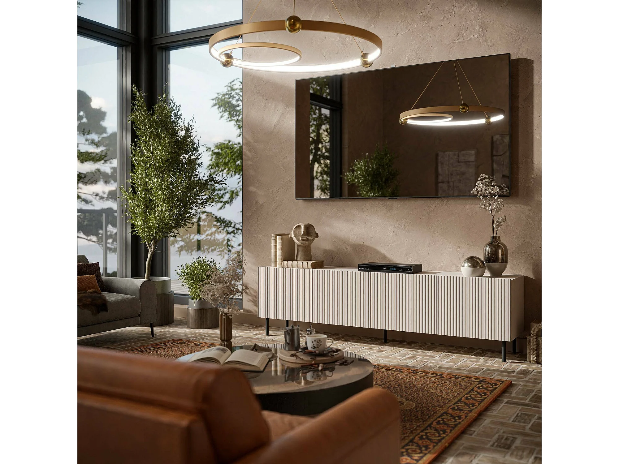 Meuble TV Gandra, 4 étagères, 42x200x52h cm Beige