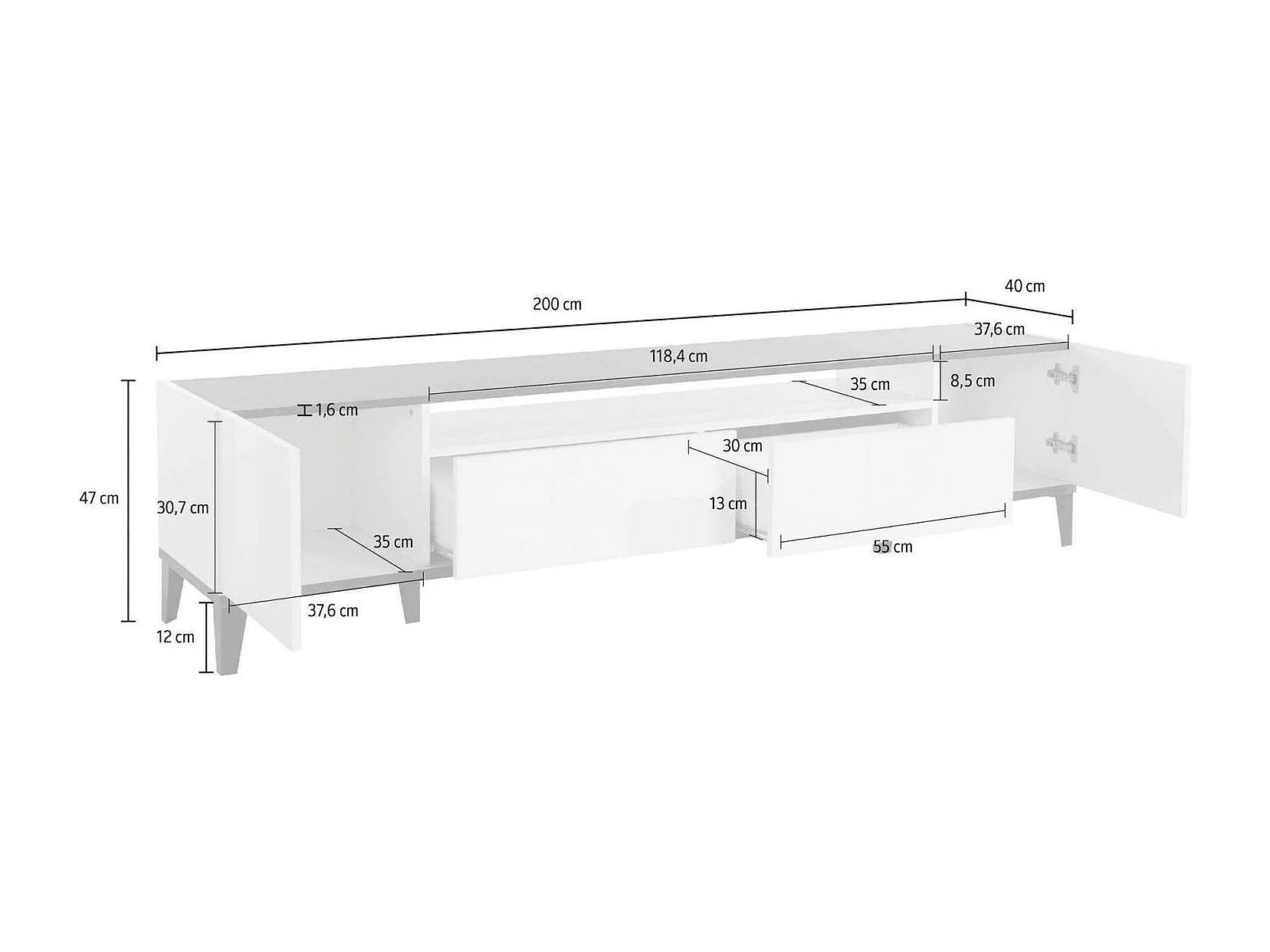 Meuble TV Raffaele, Buffet bas de salon avec 2 portes, Base pour meuble TV, 100% Made in Italy, 200x40h47 cm, Ardoise et Érable