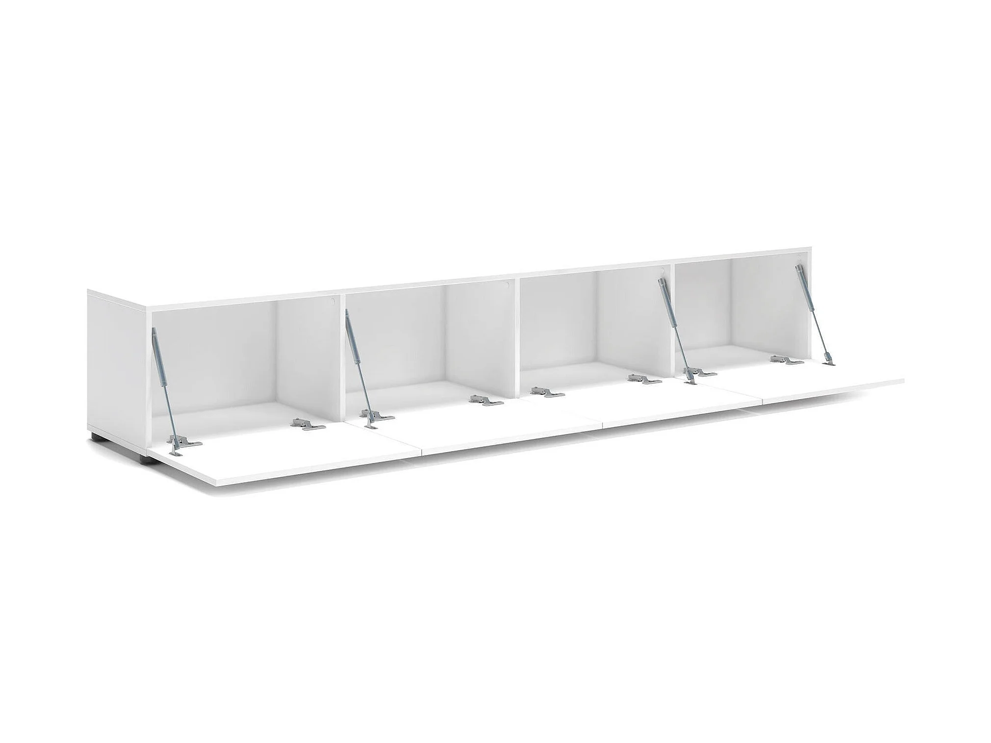 Meuble TV Randfontein, Buffet de salon, Armoire basse pour TV, Base murale de rangement, Made in Italy, 225x38h39 cm, Blanc brillant