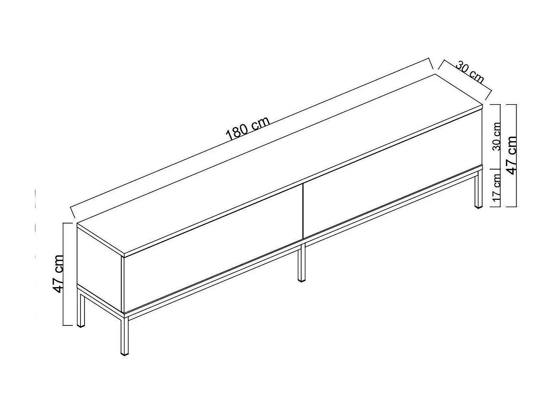 Meuble TV Regulus, Buffet de salon, Armoire basse pour TV, Base murale de rangement, 180x30h47 cm, Blanc et Argent