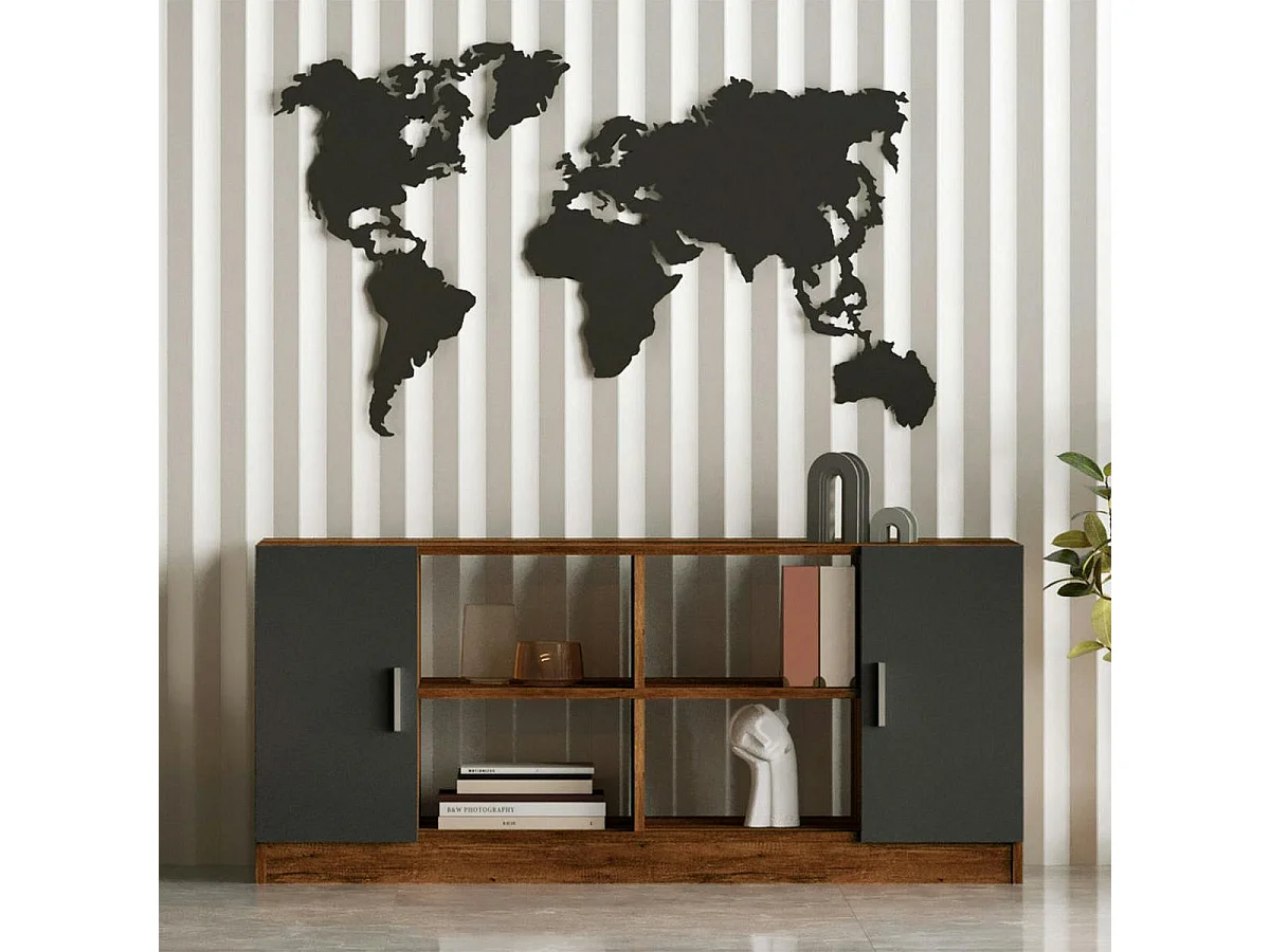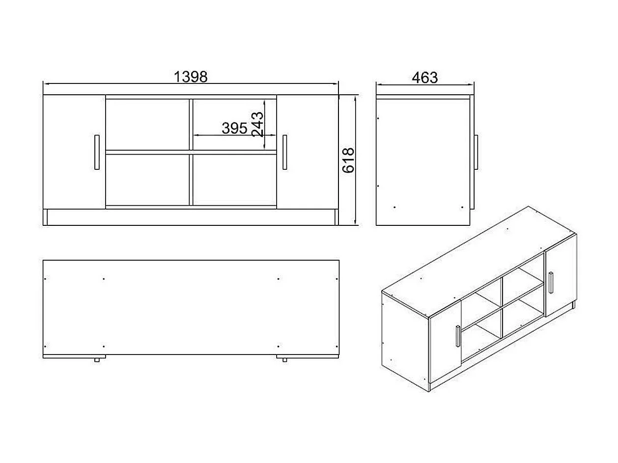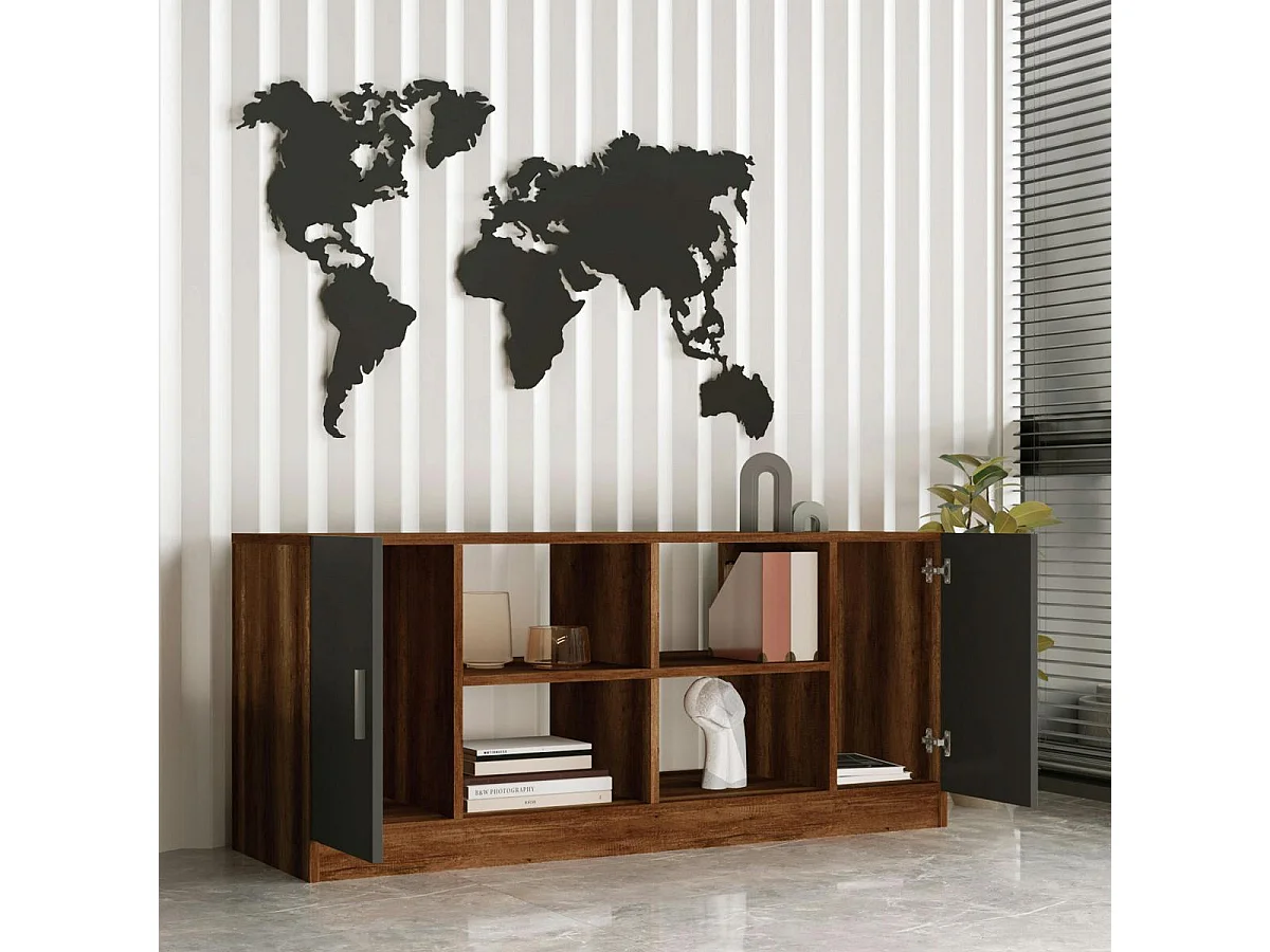 Meuble TV rétro chic décor bois foncé 2 portes grises MARFA
