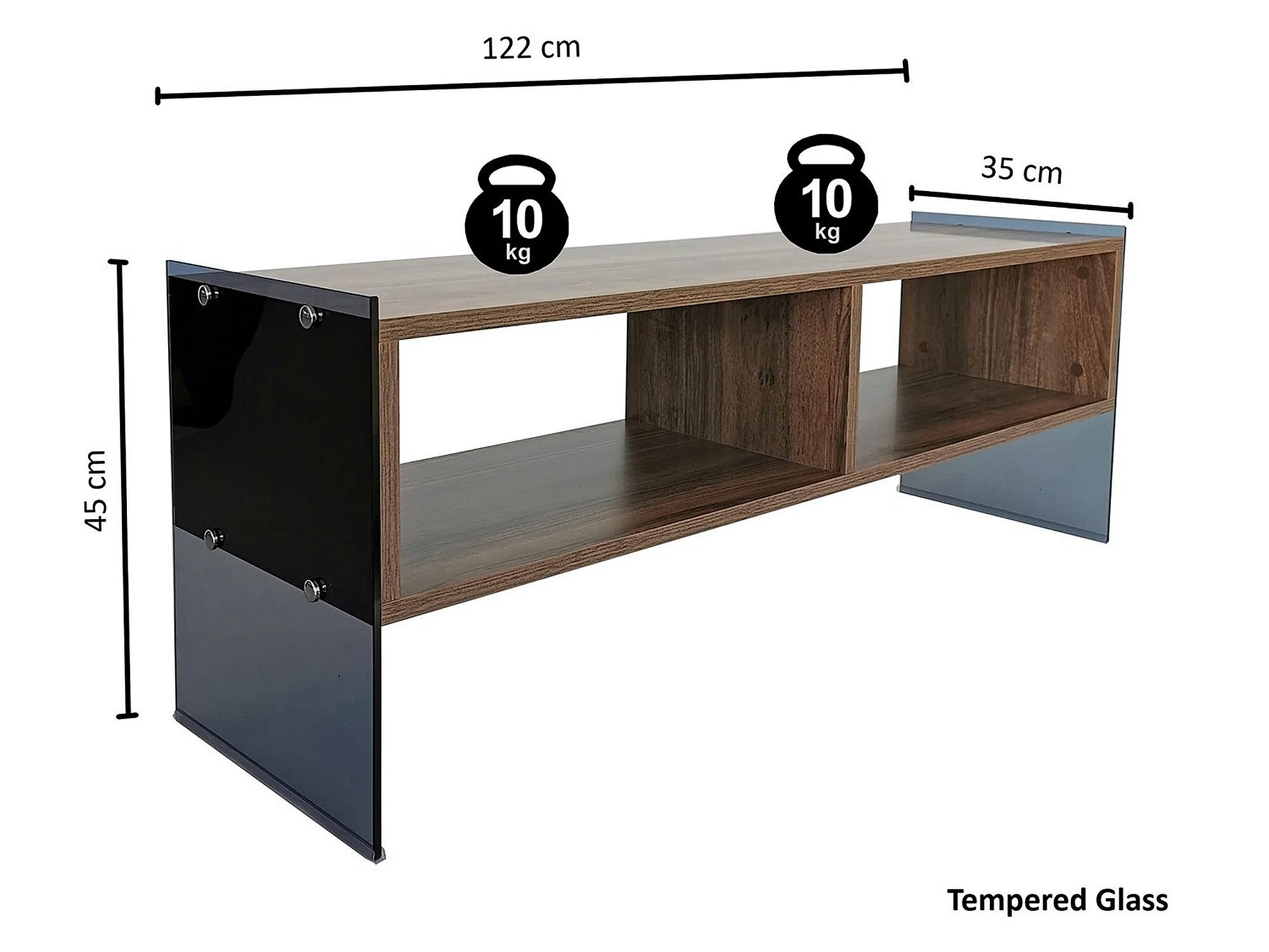 Meuble tv rhin design 100 % panneau de particules plaqué mélaminé en couleur nogal 120x45x35cm