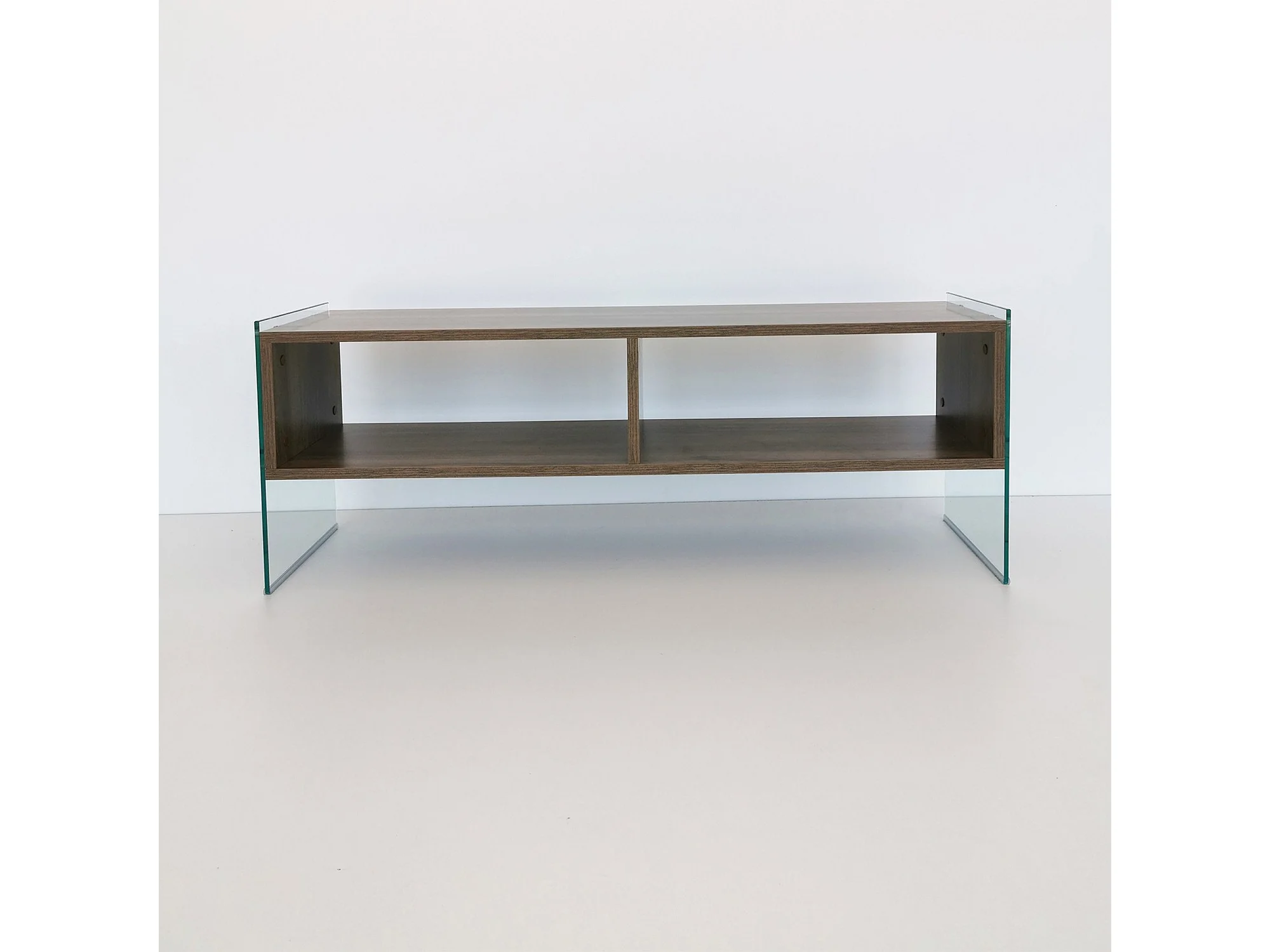 Meuble tv rhin design 100 % panneau de particules plaqué mélaminé en couleur nogal, 120x45x35cm