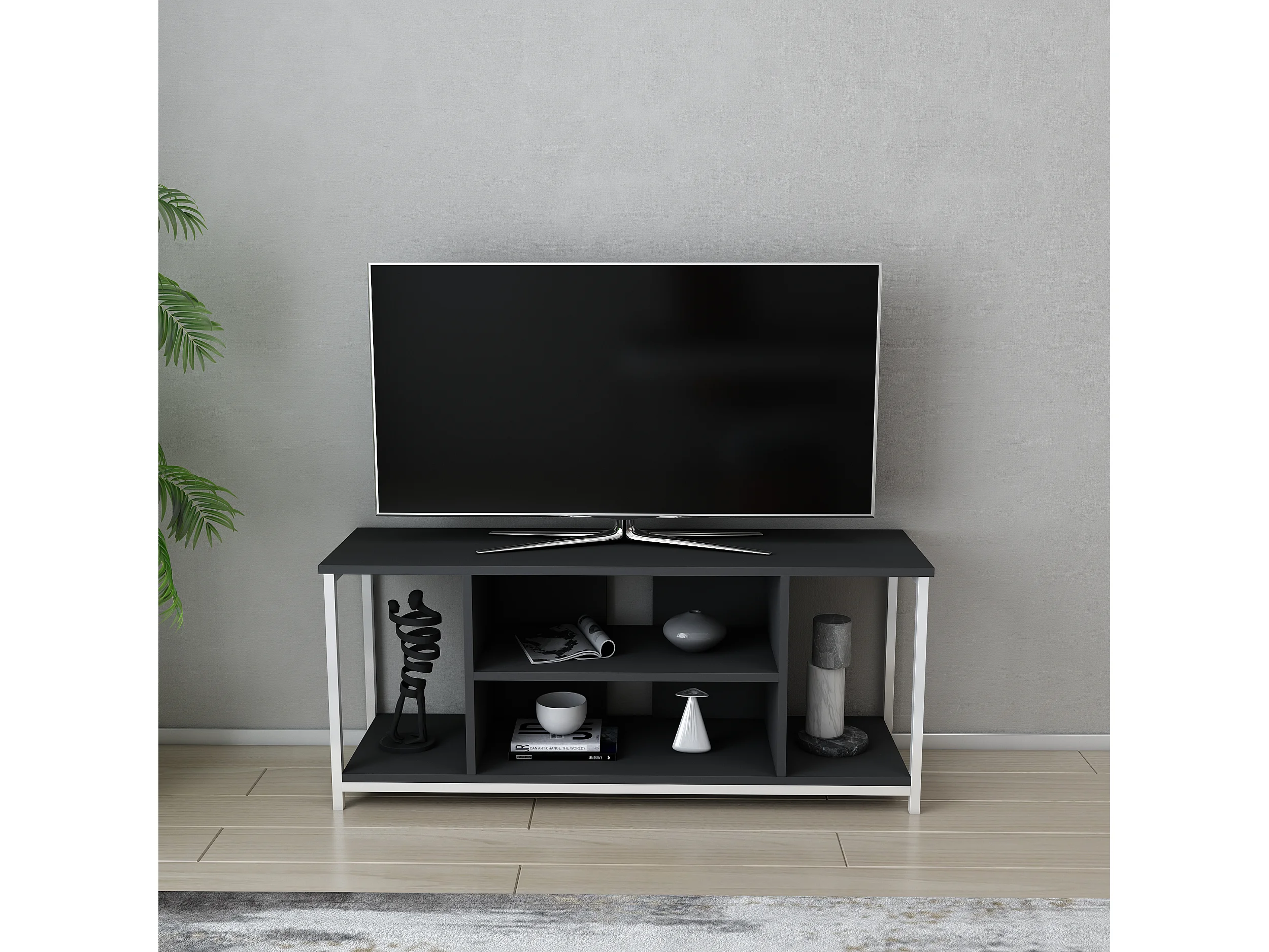 Meuble TV Rinaldo de 120 cm avec niches - cadre en métal (Blanc et Anthracite)