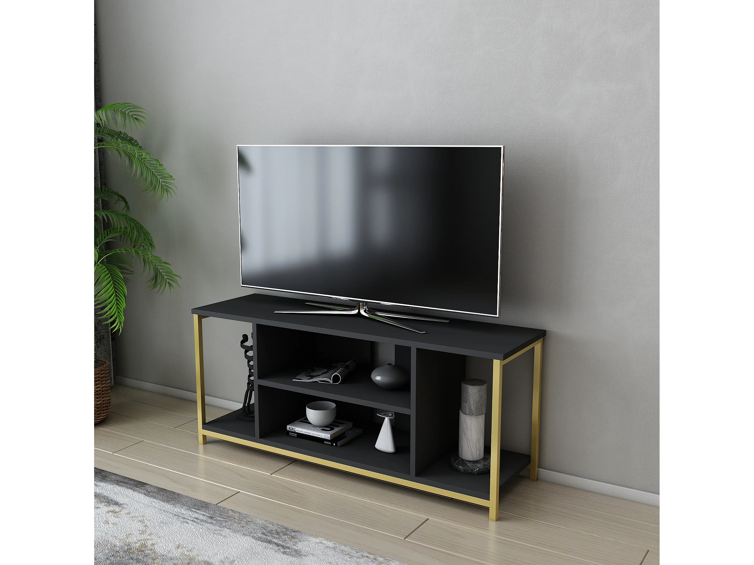 Meuble TV Rinaldo de 120 cm avec niches, cadre en métal (Doré et Anthracite)