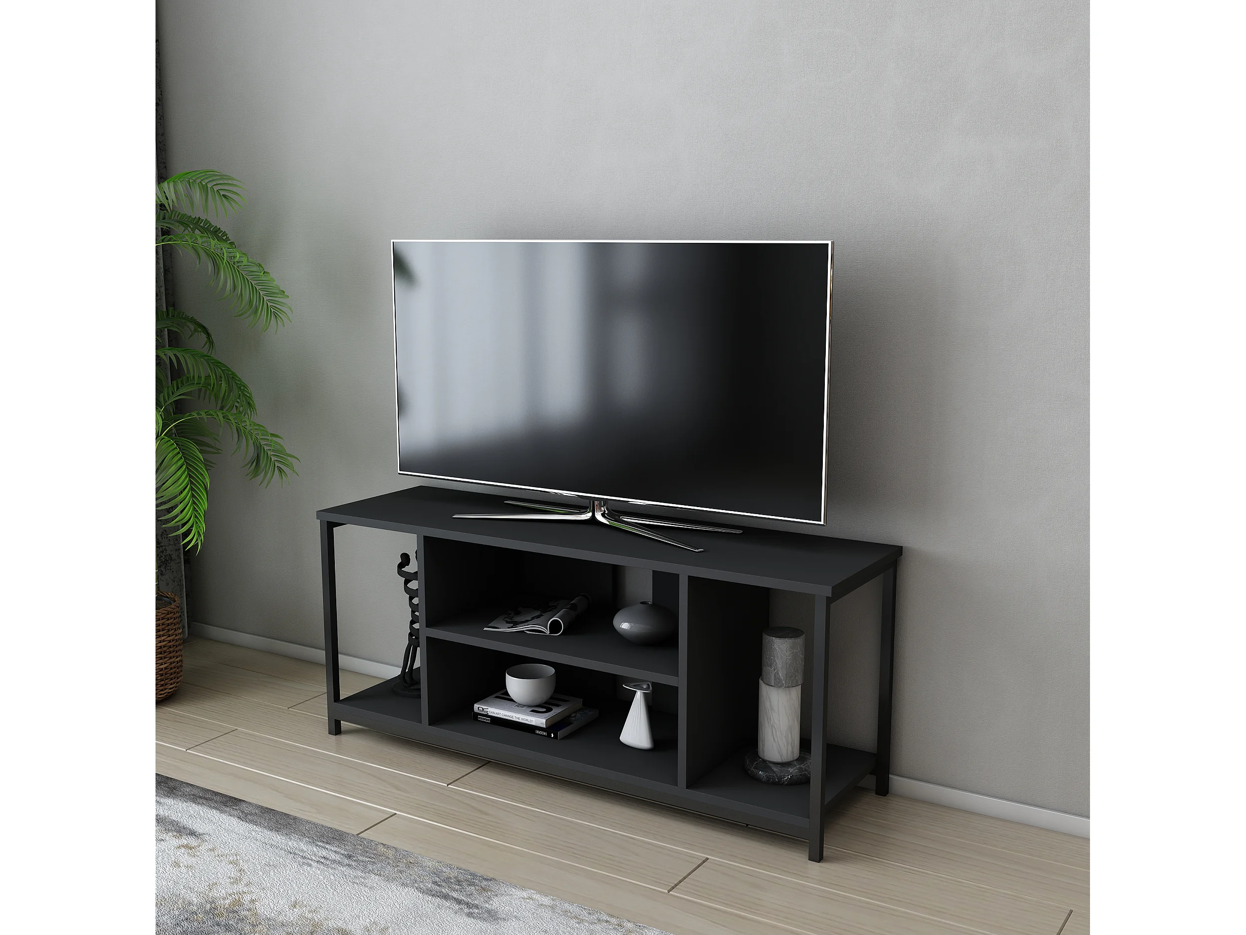 Meuble TV Rinaldo de 120 cm avec niches - cadre en métal (Noir et Anthracite)
