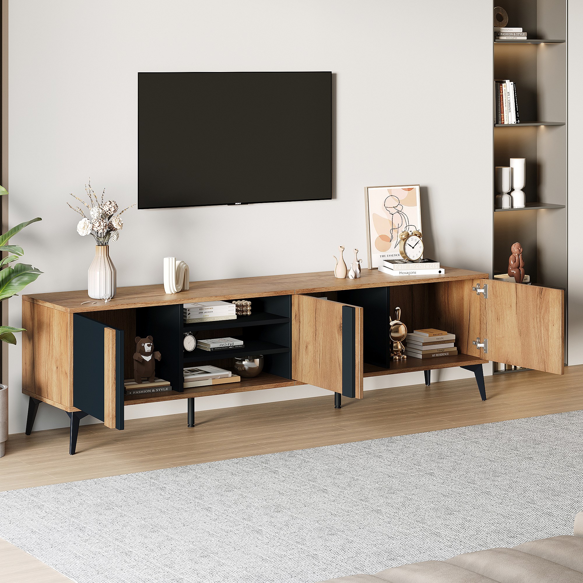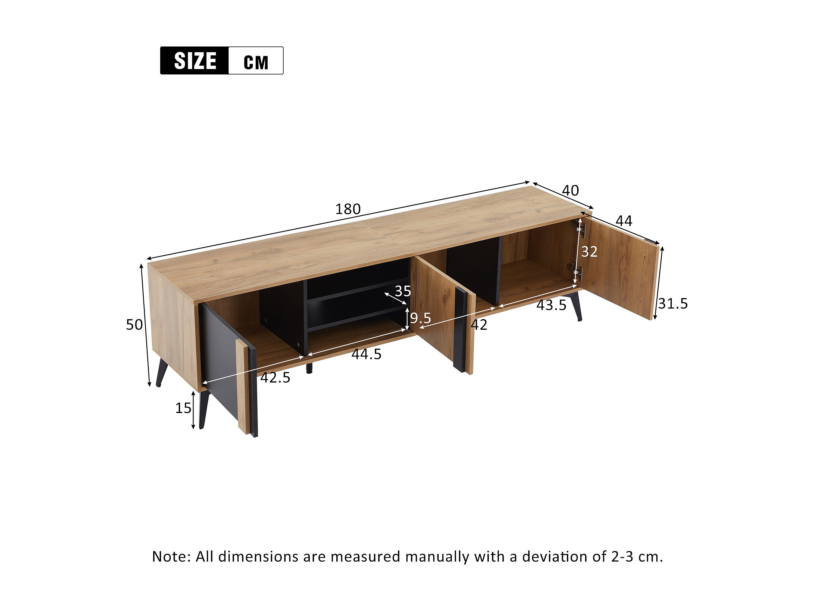 Meuble TV salon avec 3 portes meuble de rangement en bois - marron (180x40x50 cm)