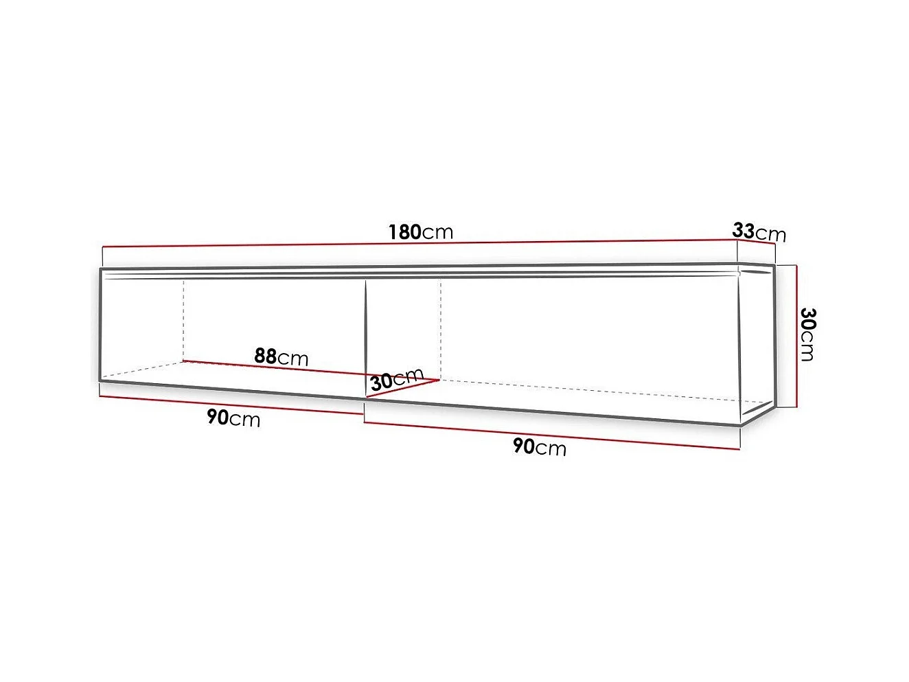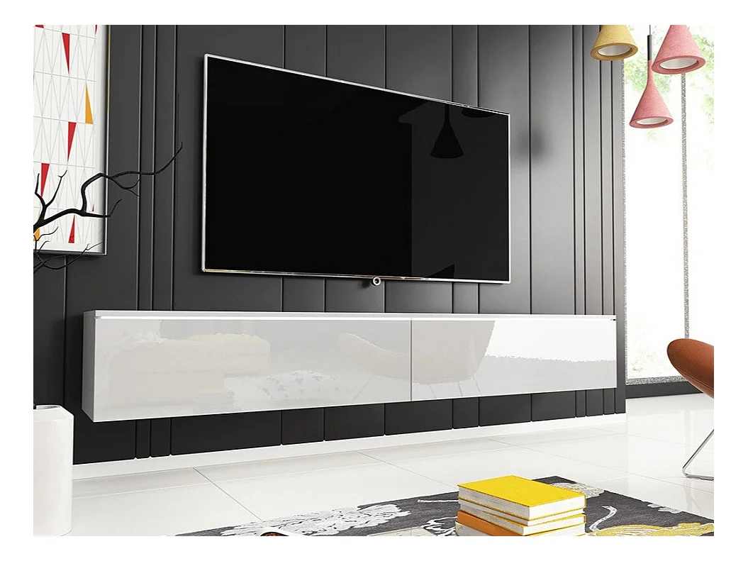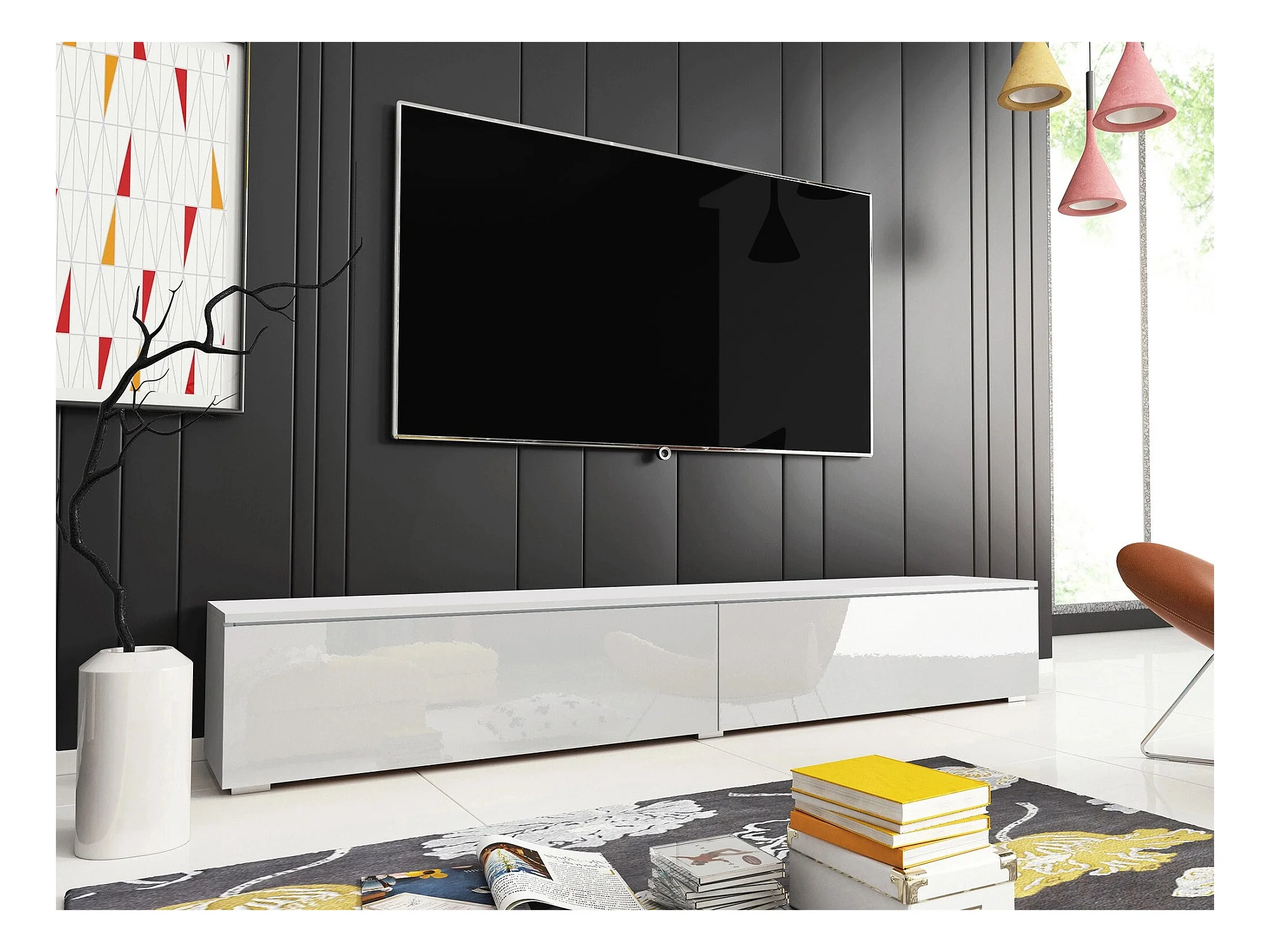 Meuble TV Sarasota 121, Blanc brillant|Blanc, Le nombre de portes: 2, 180x30x33cm