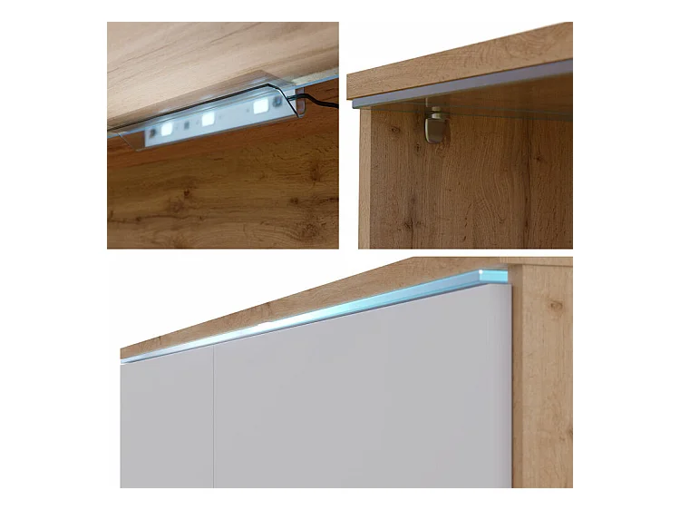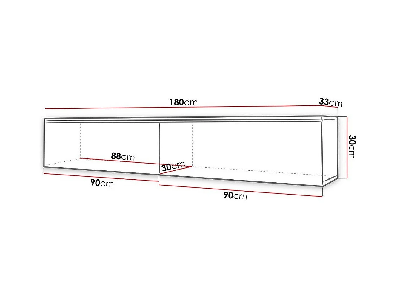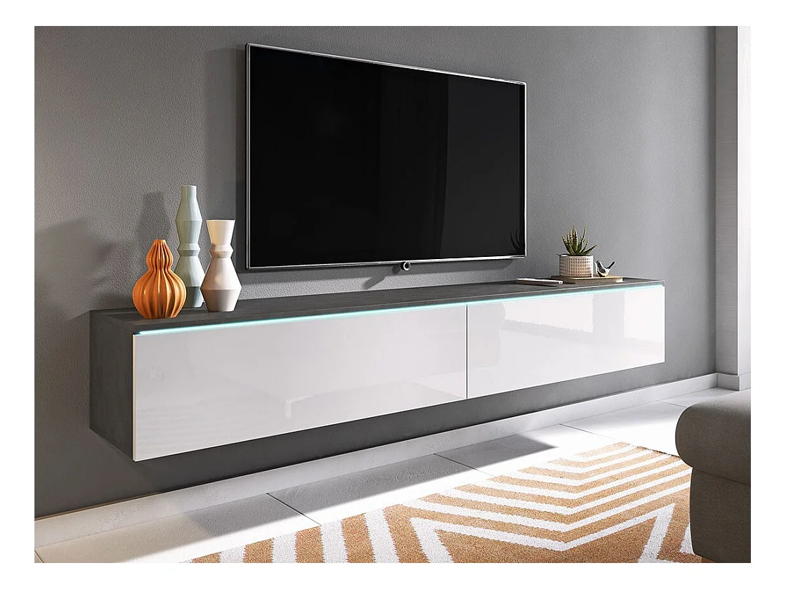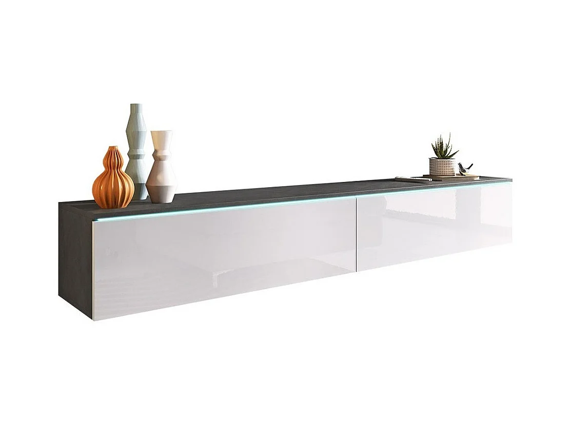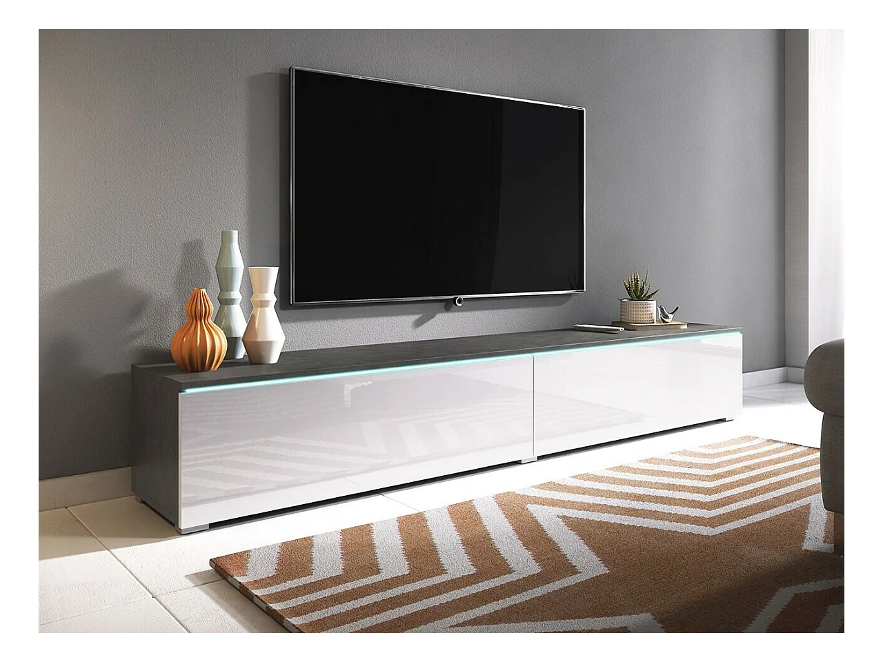Meuble TV Sarasota 121, Matera gris|Blanc brillant, Le nombre de portes: 2, 180x30x33cm
