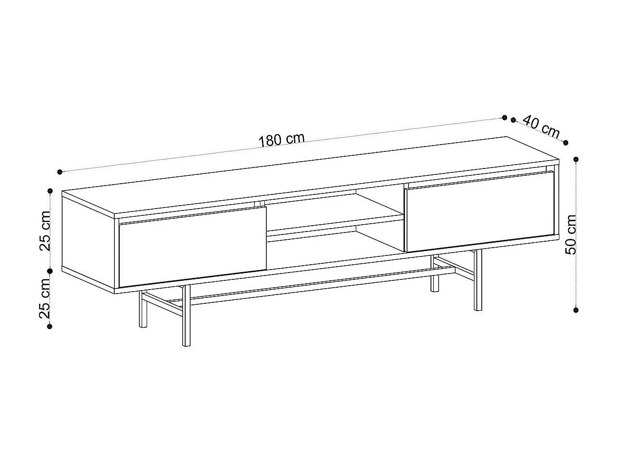 Meuble TV scandinave 2 tiroirs coulissants 2 niches JENA