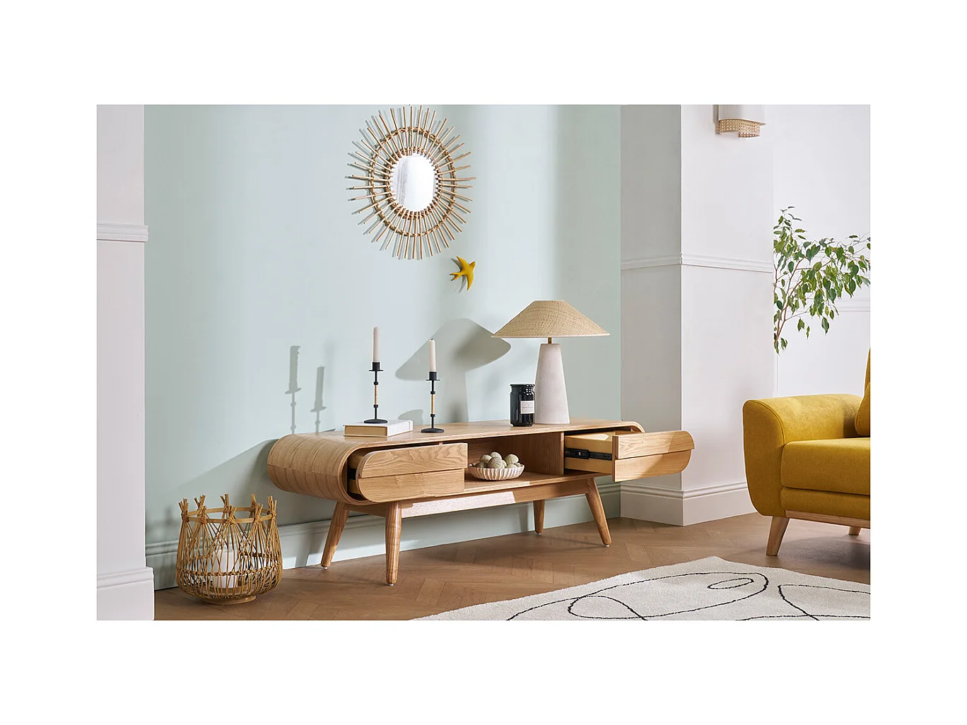 Meuble TV scandinave en bois clair 2 tiroirs L150 cm BALTIK